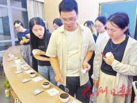 学员们在老师指导下品鉴咖啡。本报记者 李白蕾摄
