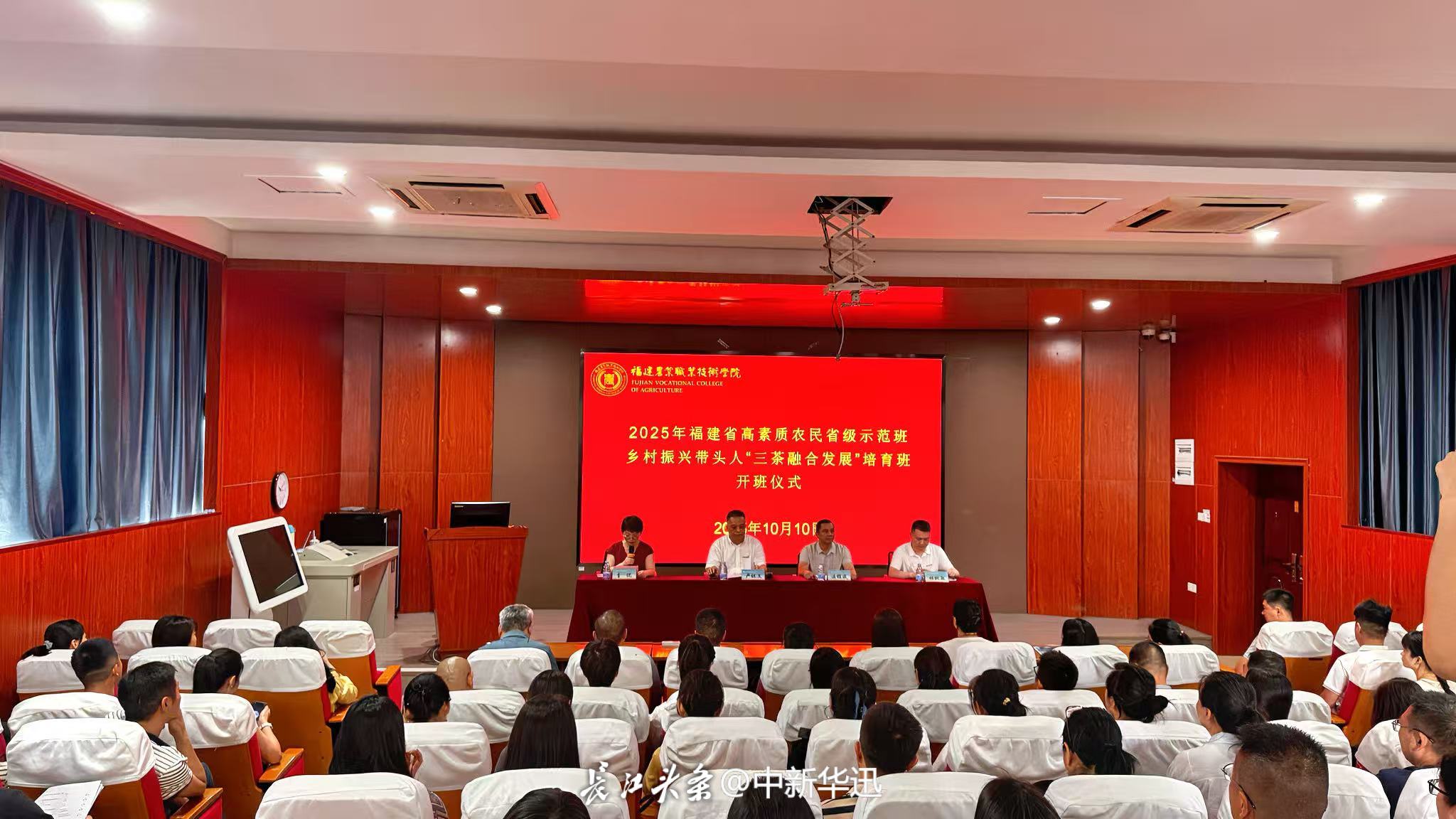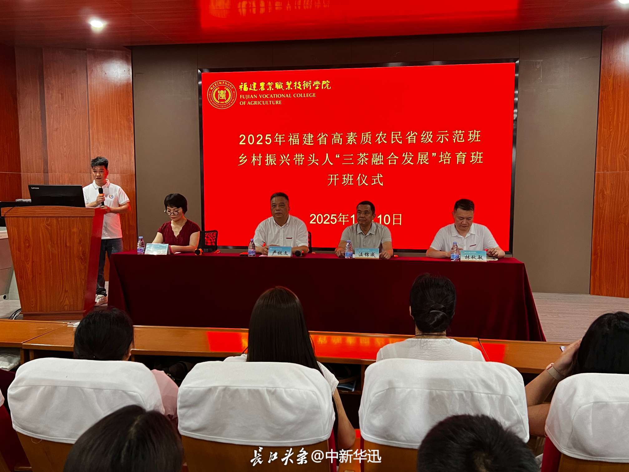 金秋送爽,丹桂飘香。2025年10月10日,由福建省农业农村厅主办、bat365在线登录网站注册赠送36承办的2025年福建省高素质农民乡村振兴带头人“三茶融合”研修班开班式在bat365在线登录网站注册赠送36隆重举行。福建省农业农村厅社会事业促进处副处长温锦成,bat365在线登录网站注册赠送36副校长严挺文,现代农业培训学院院长林秋敏,培训班班主任陈康、罗霞及全体学员参加开班式。开班式由现代农业培训学院副院长李侃主持。