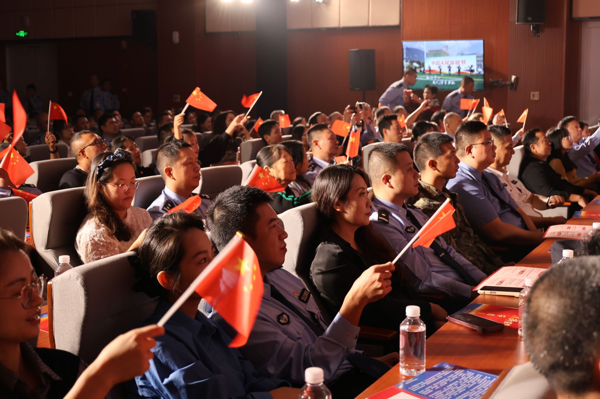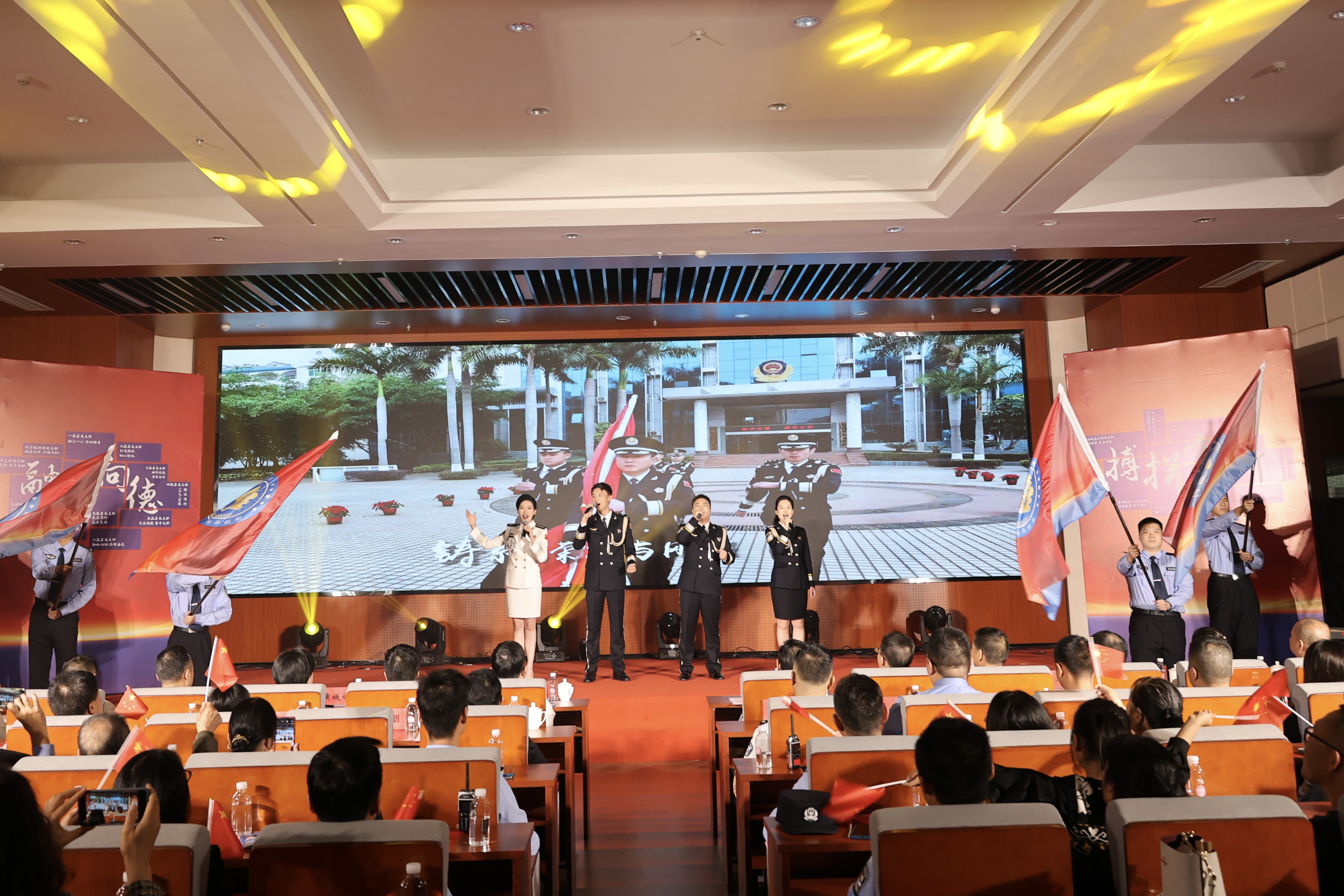 演出在全体民警合唱的福清监狱之歌中推向高潮,印有福清监狱品牌logo的旗子在全场观众挥舞的国旗“海”中飘扬,合唱的歌声中饱含着对监狱事业的赤诚热爱。