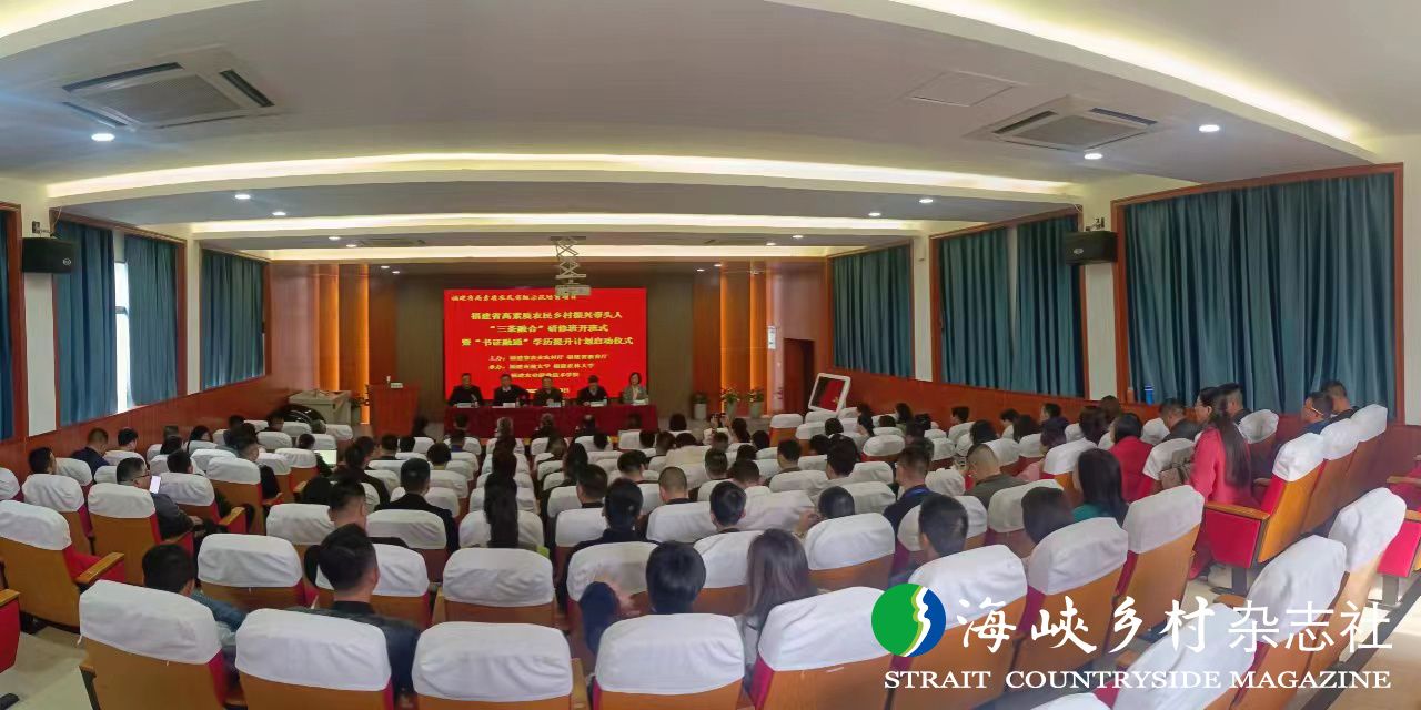 会上,与会领导共同按下启动球,福建省高素质农民乡村振兴带头人“三茶融合”研修班正式开班。