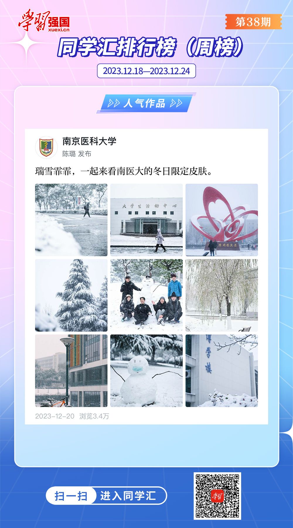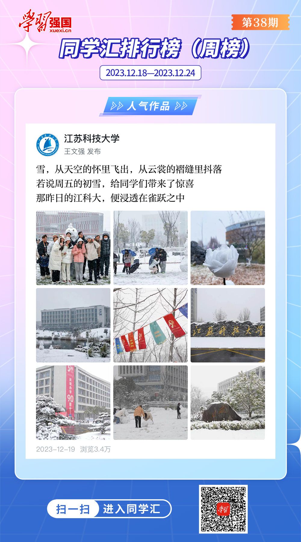 回顾这一年的校园学习生活,同学们在知识的海洋中畅游,不断充实自己,一年的努力与付出,必将在未来的日子里绽放光彩。在同学汇,同学们分享课堂学习成果,分享学术竞赛、创新创业大赛和各种实践活动,这段时光将成为他们人生中最宝贵的财富,激励着同学们不断前行,追求更高的目标。欢迎同学和校友注册加入同学汇,分享自己身边正在发生的故事!同学汇已开通话题功能,参与话题讨论#高校雪景大片##冬季到这里来看雪##高校思政课##校园最美的样子##百校社团风采展示#等内容,有机会获得“学习强国”学习平台首页推荐哦!
