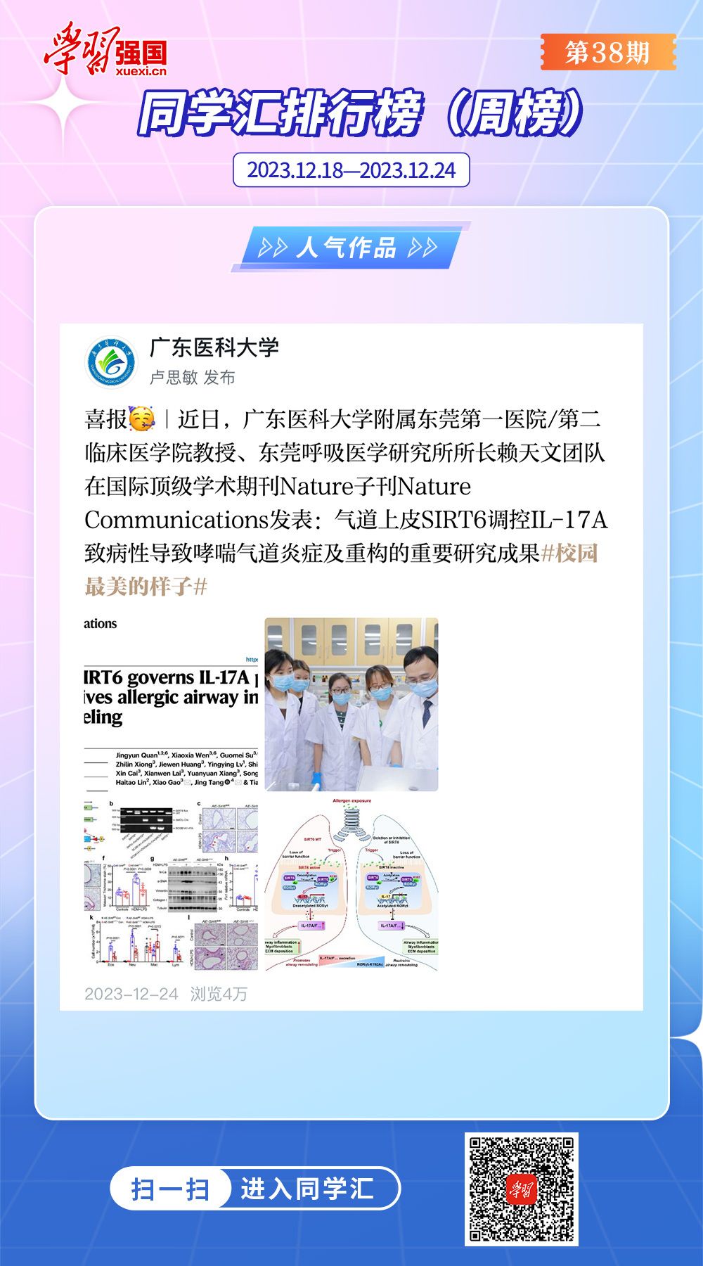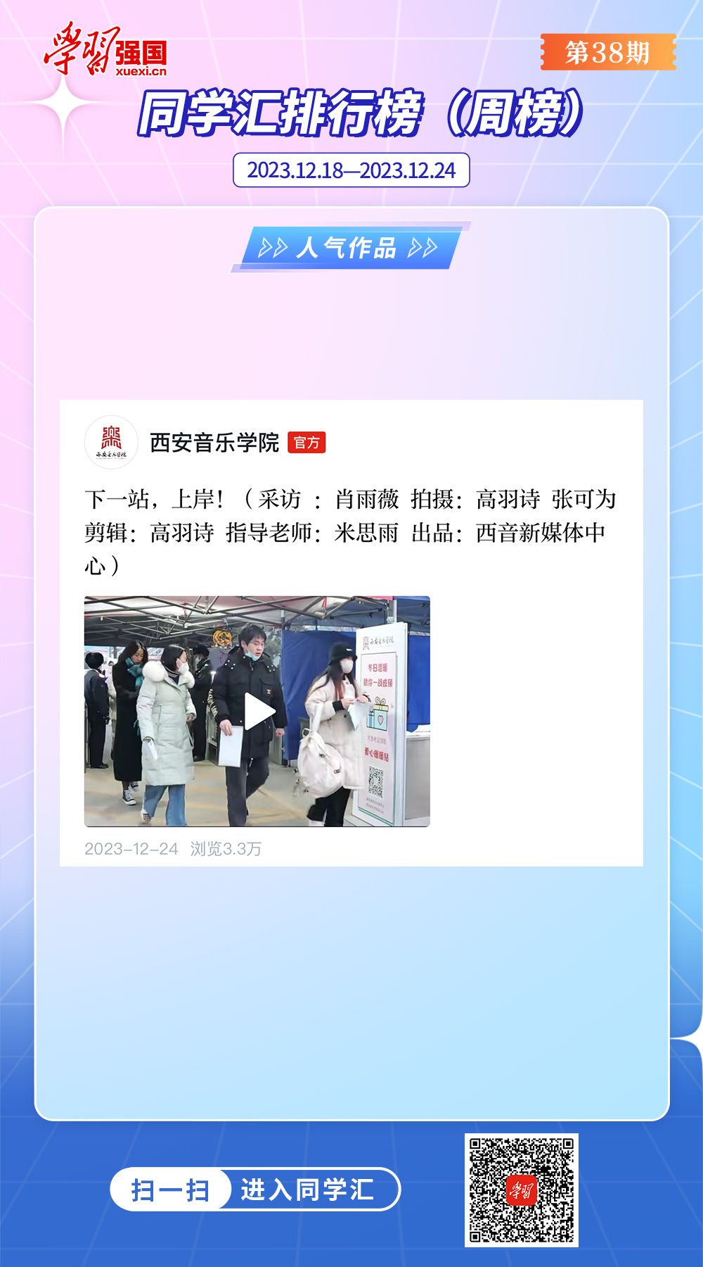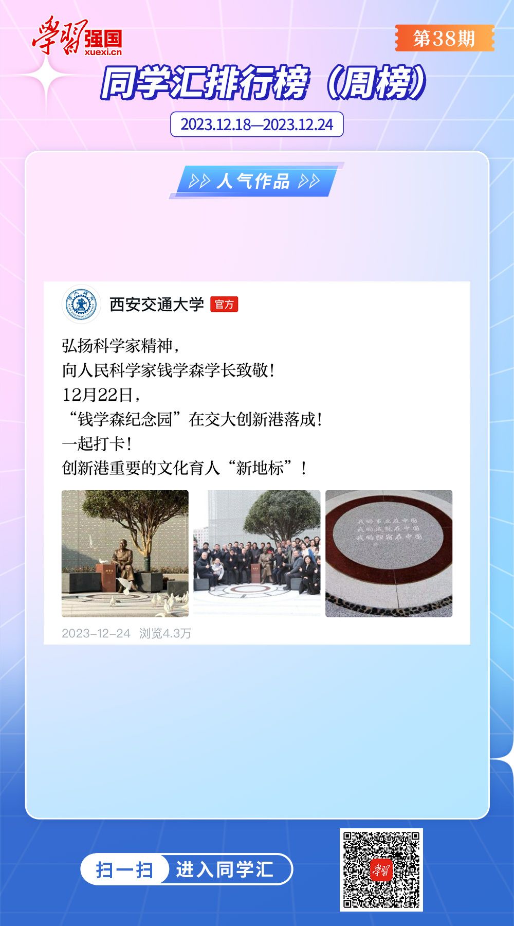人气作品方面,华南理工大学同宿舍四位女孩全员读研,成为彼此学习生活中的亲密伙伴;杭州电子科技大学迎新晚会热浪来袭,快乐氛围拉满;山东艺术学院“绘节气之韵,颂中华之情”画扇大赛,绘出二十四节气之美;“钱学森纪念园”在西安交通大学创新港落成,成为西安交大文化育人“新地标”;同济大学、西安音乐学院为考研学子加油鼓劲;江苏科技大学、南京医科大学雪后校园美不胜收,邀请大家前去打卡。