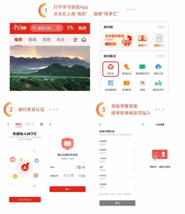 在校大学生和校友在同学汇内加入自己的学校,按照以下三步,轻松加入: