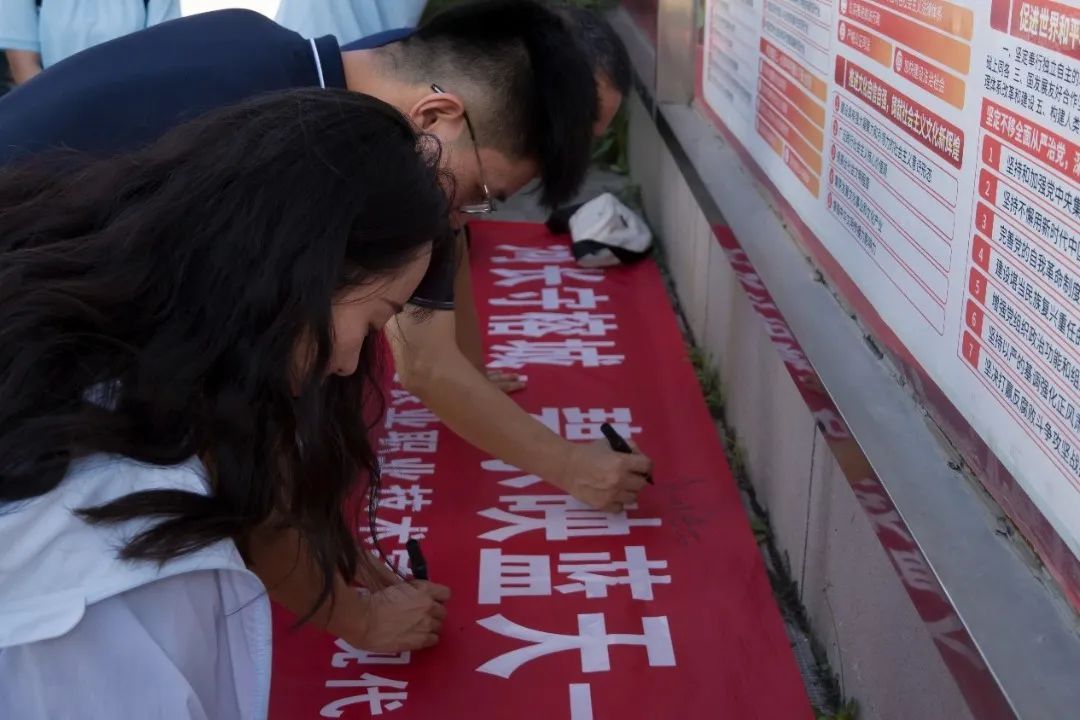 绿水逶迤去,青山相向开。顺利完成采样后,实践队便开始进行横幅签名活动,同时开展入户宣传爱河护河相关工作,也让我们明白,只有全面推动生态环境质量改善,才能满足人民群众对碧水、蓝天、青山、净土的需要。
