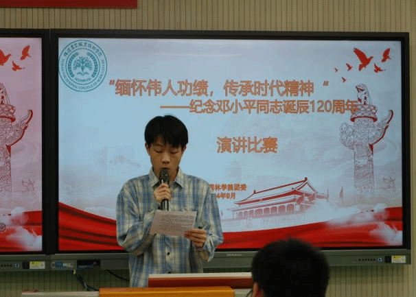 邓小平同志作为中国改革开放和现代化建设的总设计师,他的思想与功绩如璀璨星辰照亮历史长河。这场演讲比赛,是对伟人的深切缅怀,让我们重温他在历史转折关键时期展现出的非凡政治智慧、顽强意志品质和强烈历史担当。也激励着我们广大学子以坚定的信念、无畏的勇气和不懈的奋斗,为实现中华民族伟大复兴的中国梦奋勇前行,在历史的新征程中续写新的辉煌篇章。
