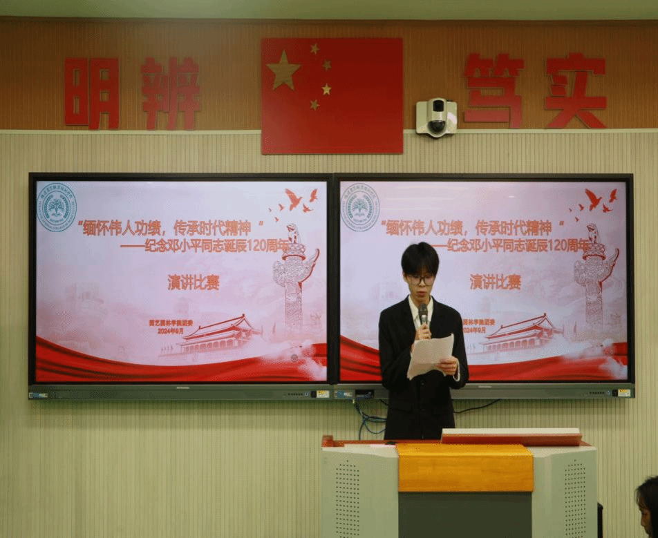 2024年9月29日晚,园艺园林学院举办的“缅怀伟人功绩,传承时代精神——纪念邓小平同志诞辰 120 周年”演讲比赛决赛于教学楼(2)404拉开帷幕。