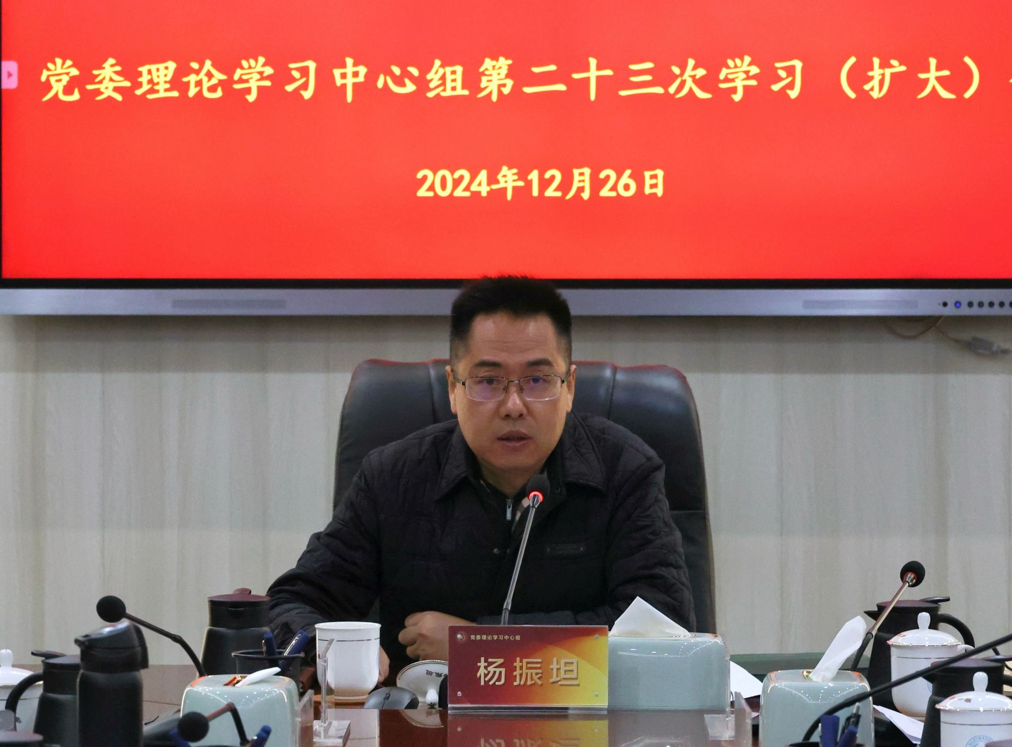 12月26日,院党委书记杨振坦主持召开第二十三次理论学习中心组学习(扩大)会,开展习近平总书记重要讲话重要指示批示精神和全省教育大会精神专题学习。院党委领导班子成员、纪委办、中专部负责人;二级党组织书记参加了会议。
