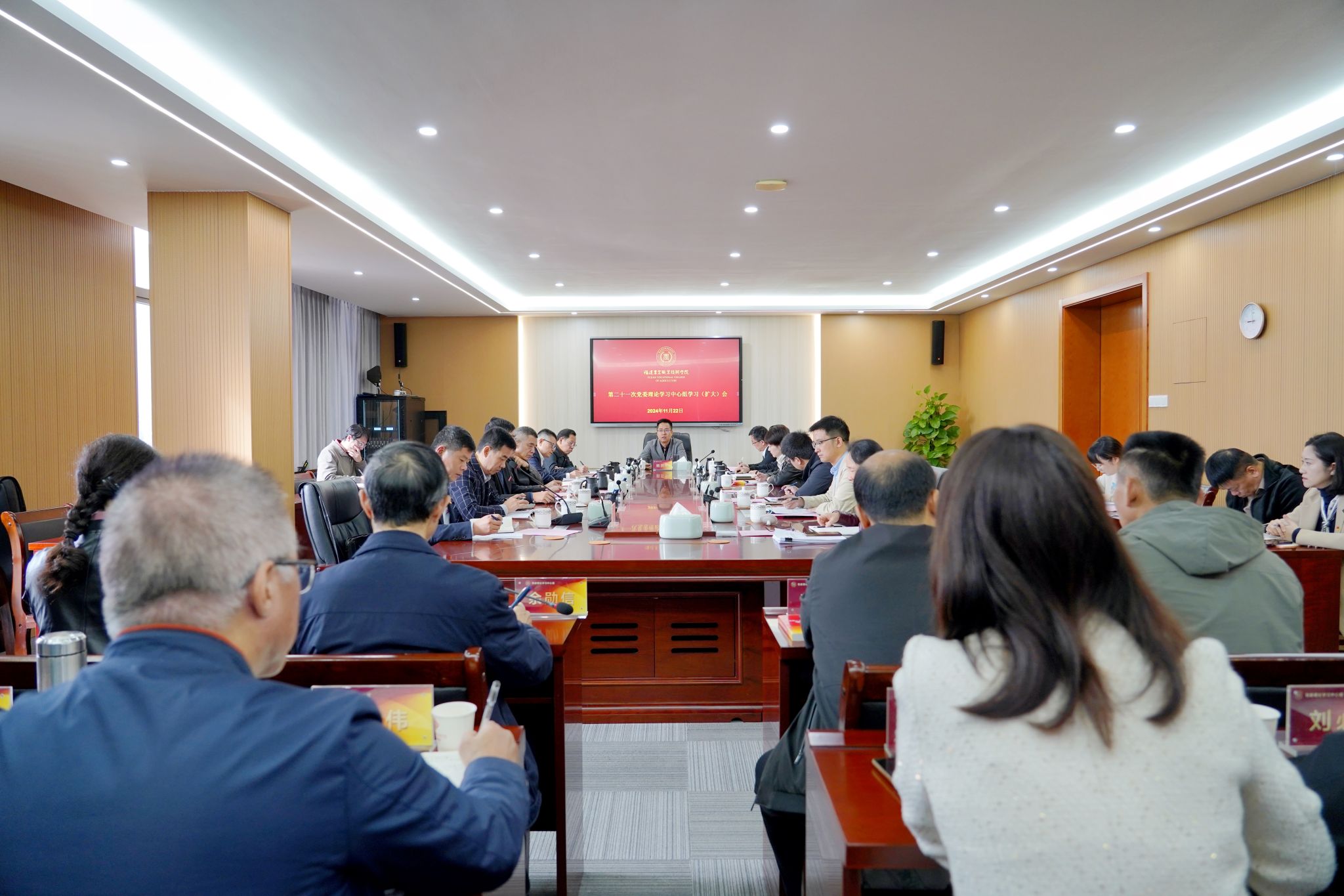 11月22日,院党委书记杨振坦主持召开第二十一次理论学习中心组学习(扩大)会,开展习近平总书记重要讲话精神等专题学习。院党委领导班子成员、全体中层正职领导干部参加了会议。