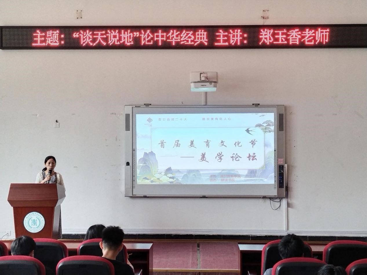 4月27日下午,由通识教育学院主办的喜迎二十大与百廿校庆“首届美育文化节——美学论坛”在耕读书院拉开序幕,耕读书院学员、各二级学院学生代表共60余人参与了此次活动。本次讲座共有两场,分别由郑玉香和吴礼光两位老师主讲,通识教育学院美育工作室负责人何斓老师担任活动主持。