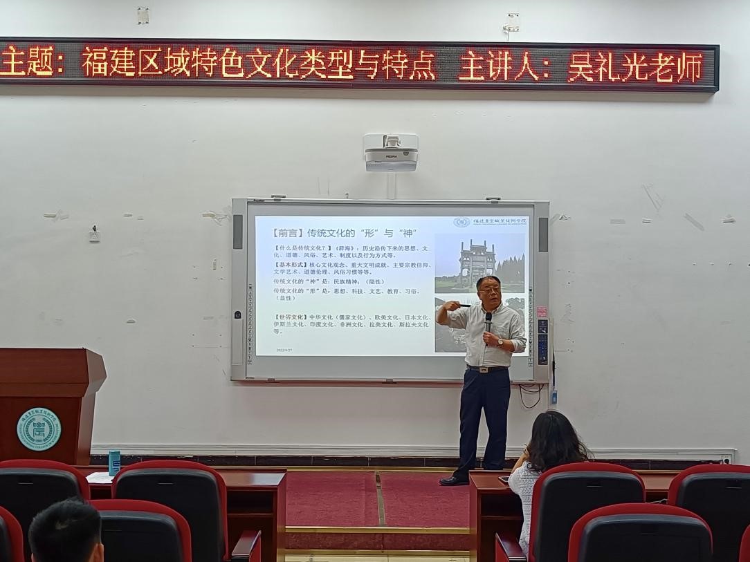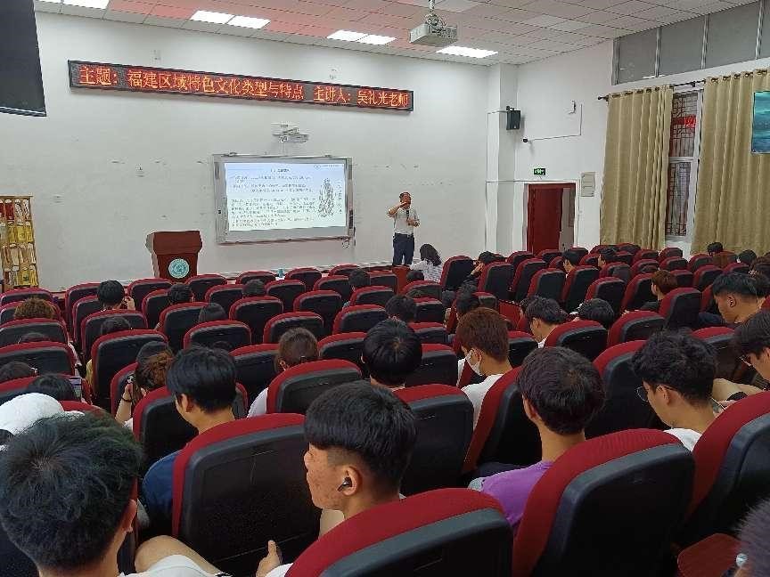第二场讲座由吴礼光老师主讲,主题为 “福建区域特色文化类型与特点”,带领同学们加深对中华传统文化和福建各区域的文化认知。