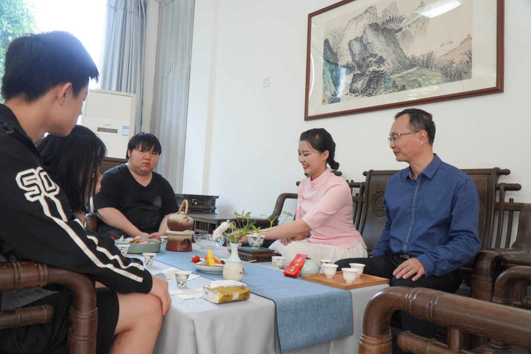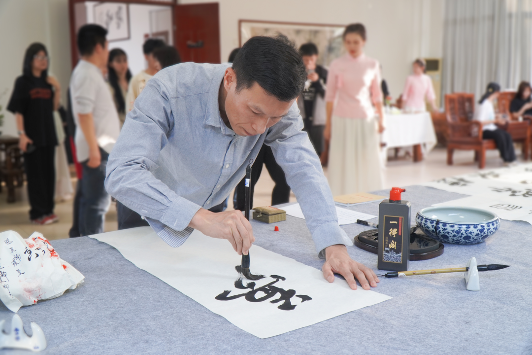 大美无疆,中国传统文化向来蕴含多种美学元素,茶道和笔墨书画更是有奇缘妙趣。五月中旬入夏之季,bat365在线登录网站注册赠送36首届美育文化节的收官之作——茶叙暨书画笔会,在相思岭南区乡村振兴楼一楼缓缓落下帷幕,缕缕金色夕阳辉映下:茶欲白,墨欲黑、花艺与美食款款入心。中国传统美学是不动声色的,是沁人心脾的。