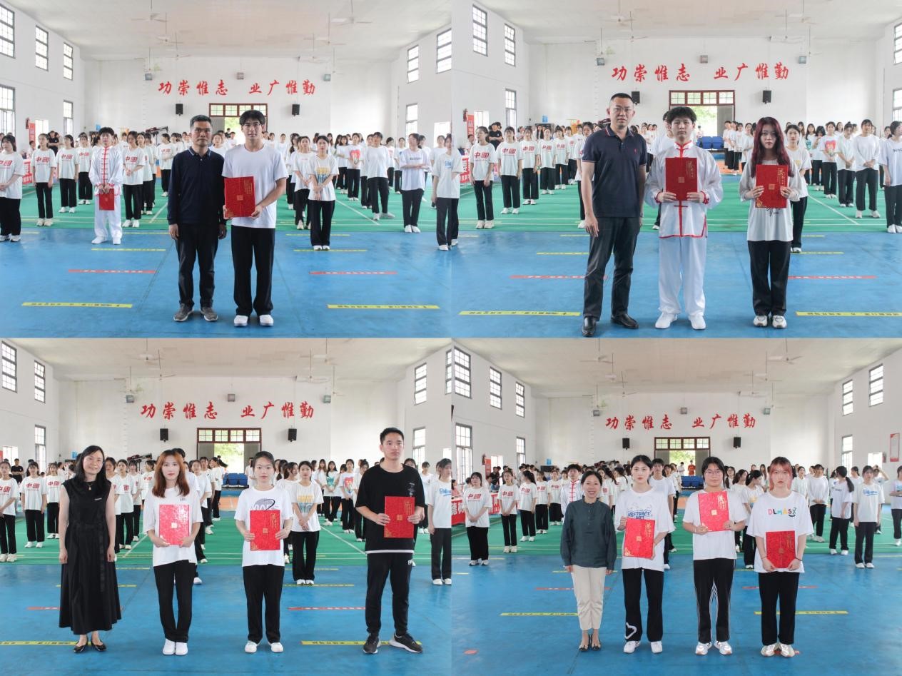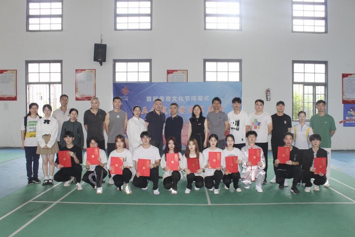 近日,首届美育文化节闭幕式暨五禽戏教学成果展演活动在相思岭校区礼堂顺利举行。通识教育学院陈辉忠书记、宋振宇副书记、张红梅副院长,以及通识教育学院的老师们和各二级学院的学生们观摩了此次展演活动。此次展演活动以在校体育教师为单位,每位体育教师从所授课班级中挑选出不少于20名学生组队,全校共11支队伍参与展演活动。