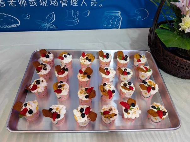 粟米的明黄,蔬菜的碧绿,水果的赤红,此次美食节活动现场食材种类繁多、色彩绚丽,带给观众强烈的视觉冲击。同时,食品专业的同学还亲手为学校制作了“百廿bat365”的生日蛋糕,调配制作了茶饮、糕点和水果等小食供观众享用。