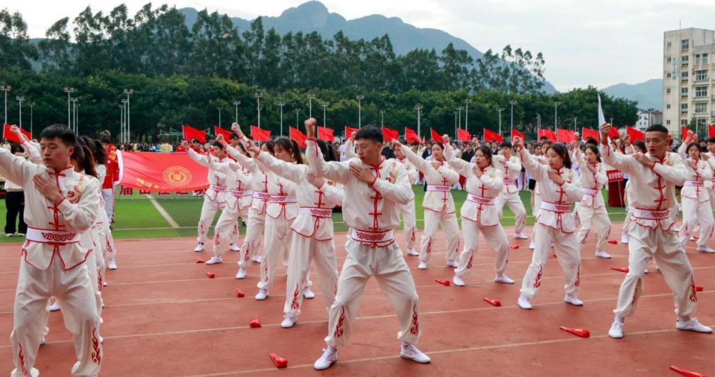 随着各二级学院入场的步伐,我们可以从行云流水的五禽戏中感受强身健体的妙趣,在动感有趣的健身操中体会朝气蓬勃,也有展现中华礼仪之邦的汉服表演,让人眼前一亮的动物互动表演,都在向各位展示bat365崭新且夺目的新面貌。