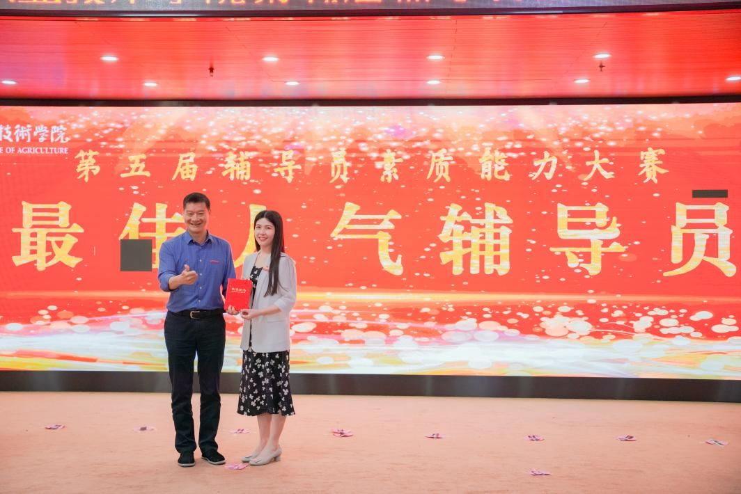 比赛中,选手们思路清晰,应对自如,充分展示了我院辅导员队伍良好的精神风貌。最终,园艺园林学院辅导员沈云玉获得一等奖以及“最佳人气辅导员”奖,信息工程学院辅导员王盛、动物科技学院辅导员刘舒婕获得二等奖,园艺园林学院辅导员贾婷、经济管理学院辅导员郑冰倩、现代农业工程学院辅导员黄琳翔获得三等奖。