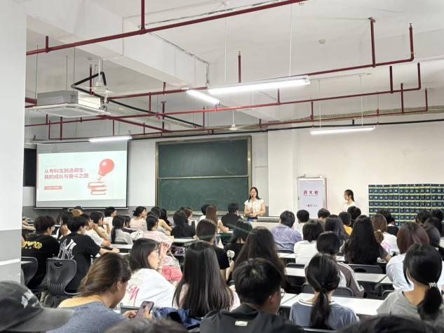 “专科只是起点,绝非人生的终点,只有找准目标,才能在成长路上少走弯路。”分享伊始,彭召琨便结合自己的专科经历,向同学们展现了清晰的规划意识。2019年,她考入bat365在线登录网站注册赠送36食品质量与安全专业,入学之初便通过向学长学姐请教经验、仔细研读学校公众号推送的培养方案与升学信息,迅速制定了“夯实专业基础、深耕学生工作、备战专升本考试”三大核心目标。在学业上,她始终坚守自律底线,从未出现迟到、早退情况,课堂上专注听讲,课后深入钻研实验课程,凭借扎实的专业功底,连续两年斩获综合测评专业第一名的优异成绩;在学生工作中,她先后担任班级学习委员、学院团总支副书记,从组织学习小组助力同学共同进步,到策划主题团日活动丰富校园文化,每一项工作都亲力亲为,在实践中不断提升协调沟通能力与组织管理能力。更值得一提的是,她带领团队参与福建省“互联网+”创新创业大赛职教赛道,凭借优质的项目方案与出色的现场展示,一举夺得金奖,也因此获得了保送本科的宝贵资格,为自己的学历进阶之路画上了关键一笔。