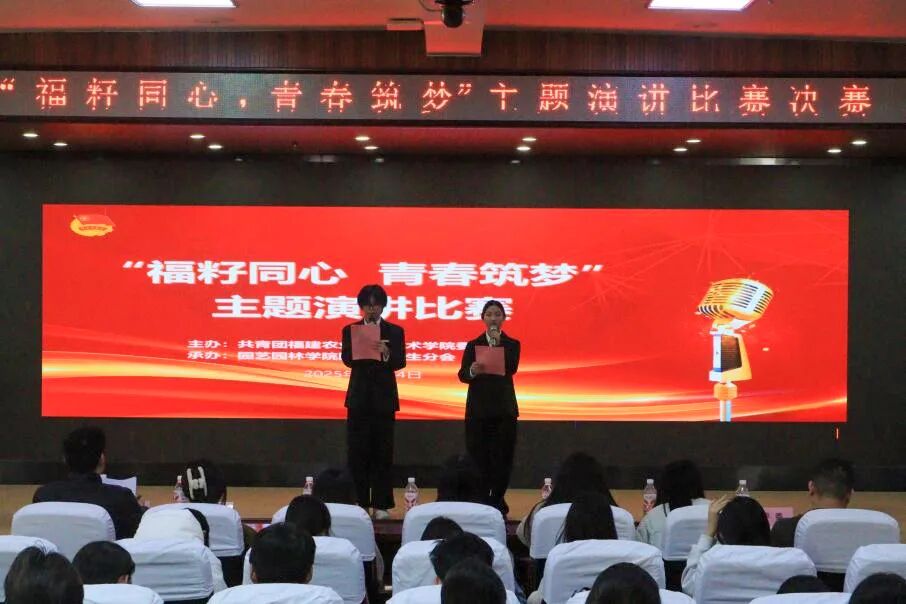 12月4日,由院团委主办,园艺园林学院团委、学生分会承办的“福籽同心 青春筑梦”演讲比赛在学术报告厅圆满落幕,来自全校8个二级学院的15名选手齐聚一堂,用青春之声讲述民族团结故事,以真挚情感诠释“中华民族一家亲”的深刻内涵,为现场观众呈现了一场思想深刻、情感充盈的文化盛宴。本次比赛的评委由各二级学院团委书记担任,院团委副书记冯敏娟、园艺园林学院党总支副书记李雪宁参加活动。