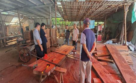 鼎盛木业总经理陈桂林对我院一行人的到来表示欢迎,并详细介绍了潋城村的现状以及地域文化,随后参观鼎盛木业的加工厂,了解了古建筑的整个生产流程及加工程序。