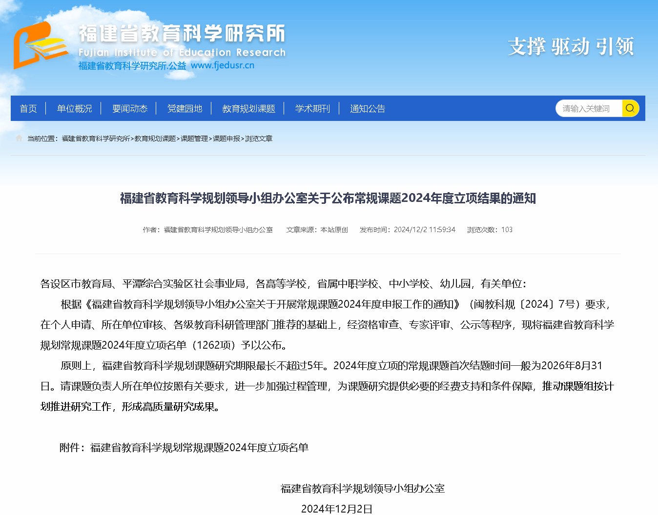 2024年度申报工作的通知》(闽教科规〔2024〕7号)要求,在个人申请、所在单位审核、各级教育科研管理部门推荐的基础上,经资格审查、专家评审、公示等程序,