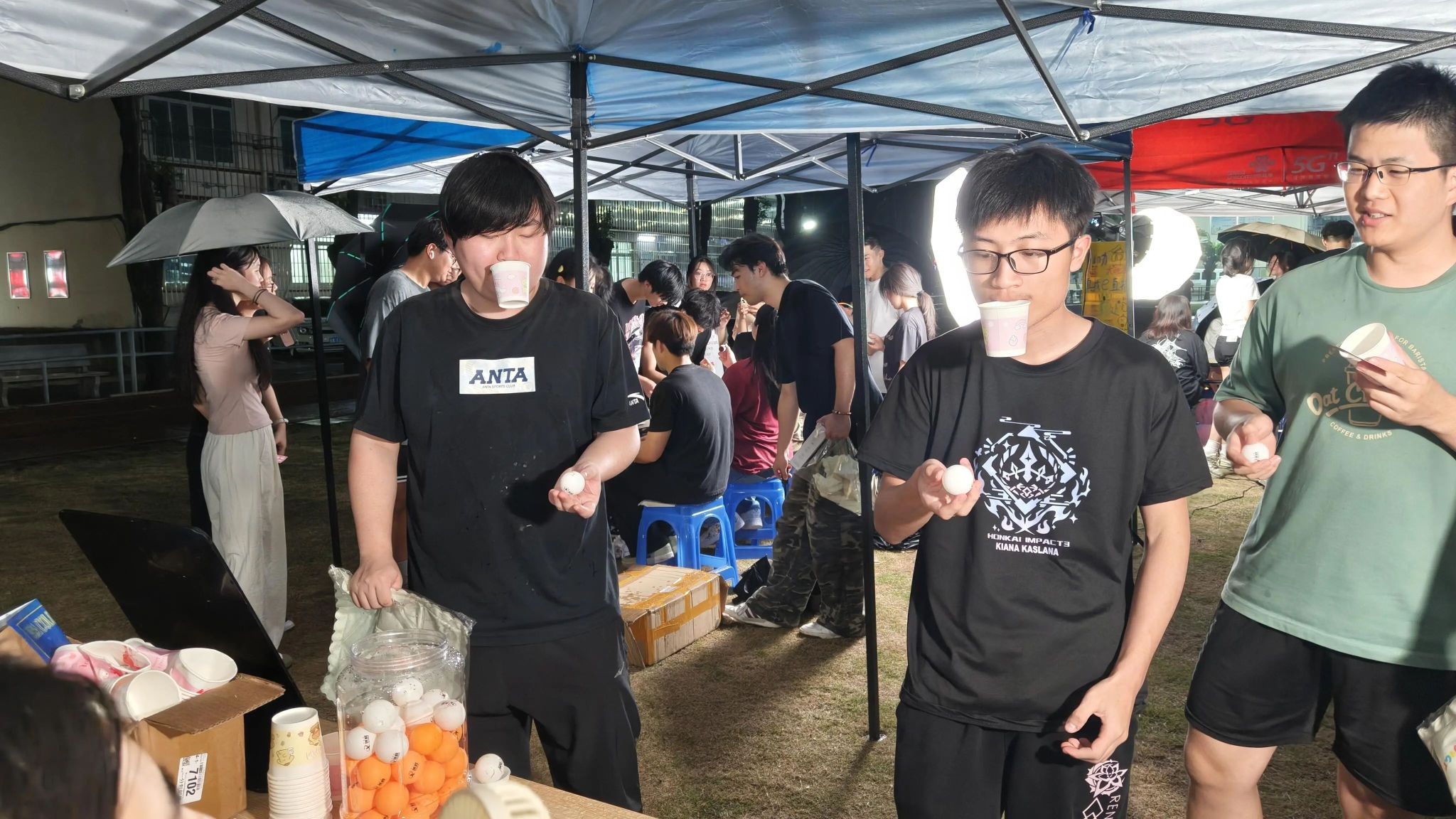 游园会现场设置了“害你在心口难开”“纸杯接球”“挤眉弄眼”“手抽纸杯”“膝盖夹硬币”五个互动游戏区域,现场设有游戏积分卡盖章环节,同学们可以在现场签到处领取游戏积分卡,通过完成游戏闯关进行集章(五个即可),凭集满五个章即可参加最后的惊喜彩蛋环节(来到直面镜头前的“自己”的小屋)可获得属于自己的礼物--独属于自己的拍立得照片。