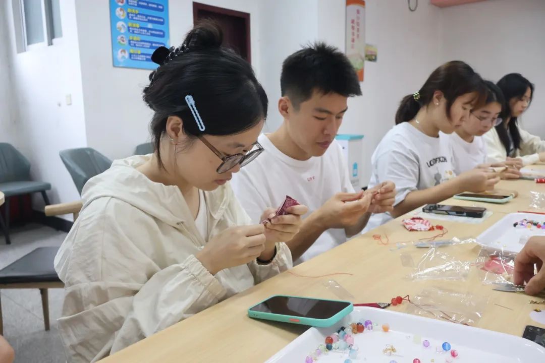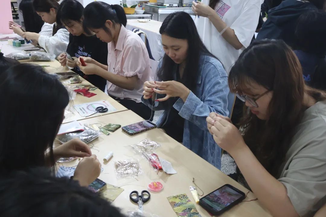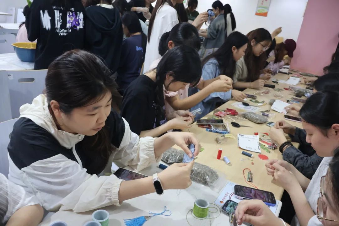在彩绳编织区域,同样热闹非凡。工作人员耐心地为参与者们示范基础编织技法,从平结的简洁利落,到金刚结的坚固美观,再到吉祥结的寓意深远,每一种技法都吸引着大家全神贯注地学习。无论是制作手链,还是编织挂饰,大家都沉浸在这千丝万缕的编织乐趣中。