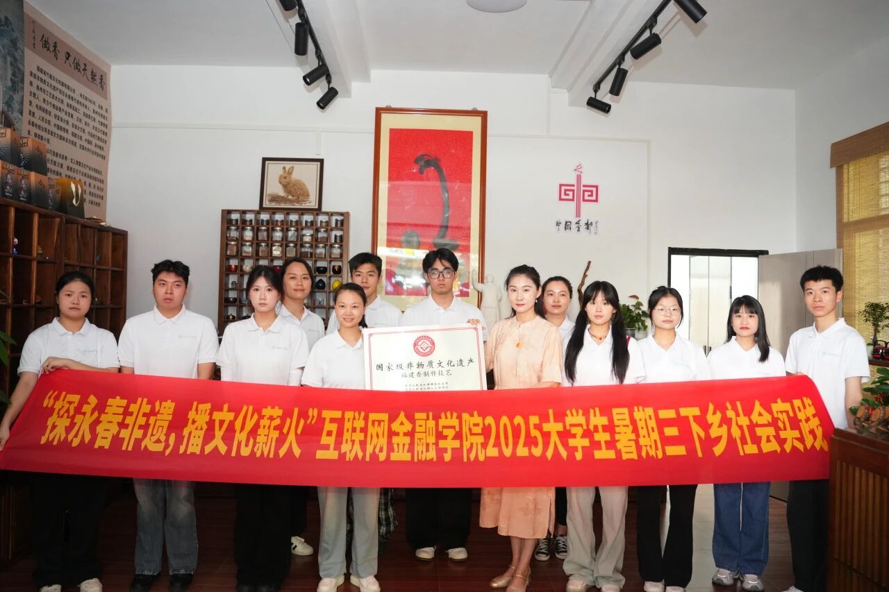 7月25日-27日,互联网金融学院“永春薪火直播实践团”走进泉州永春,在学院老师以及马克思主义学院胡艳芳、张雪清老师的共同带领下,以“拳、香、醋”三道非遗密码为线索,完成了一场跨越千年的青春接力。三天时光里,实践团成员循着三处文化坐标,既是躬身学习的探寻者,更是主动担当的传承人。他们用脚步丈量乡土的厚度,用镜头捕捉非遗技艺的温度,让青年学子在沉浸式实践中深植文化自信,点燃传承非遗的青春热情。