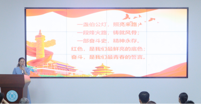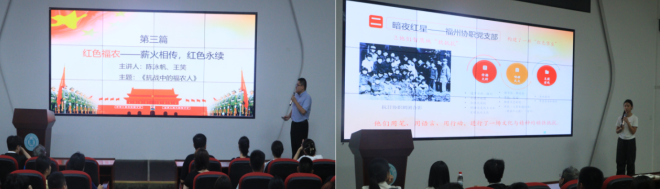 第二篇章:红色烽火,血铸长城。马克思主义学院宣讲队唐娟老师,讲述专题《从红色光影中探寻抗战胜利昭示的伟大真理》,结合生动的红色光影,讲述了中国人民抗日战争中的英雄事迹和伟大抗战精神。