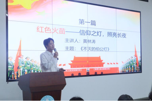 第一篇章:红色火苗,照亮长夜。活动伊始,“火苗”宣讲队黄林涛同学深情讲述了发生在闽西革命老区的“伯公灯”故事,生动诠释了革命战争年代军民鱼水情深和坚定不移的理想信念,这盏永不熄灭的灯深深触动在场师生。