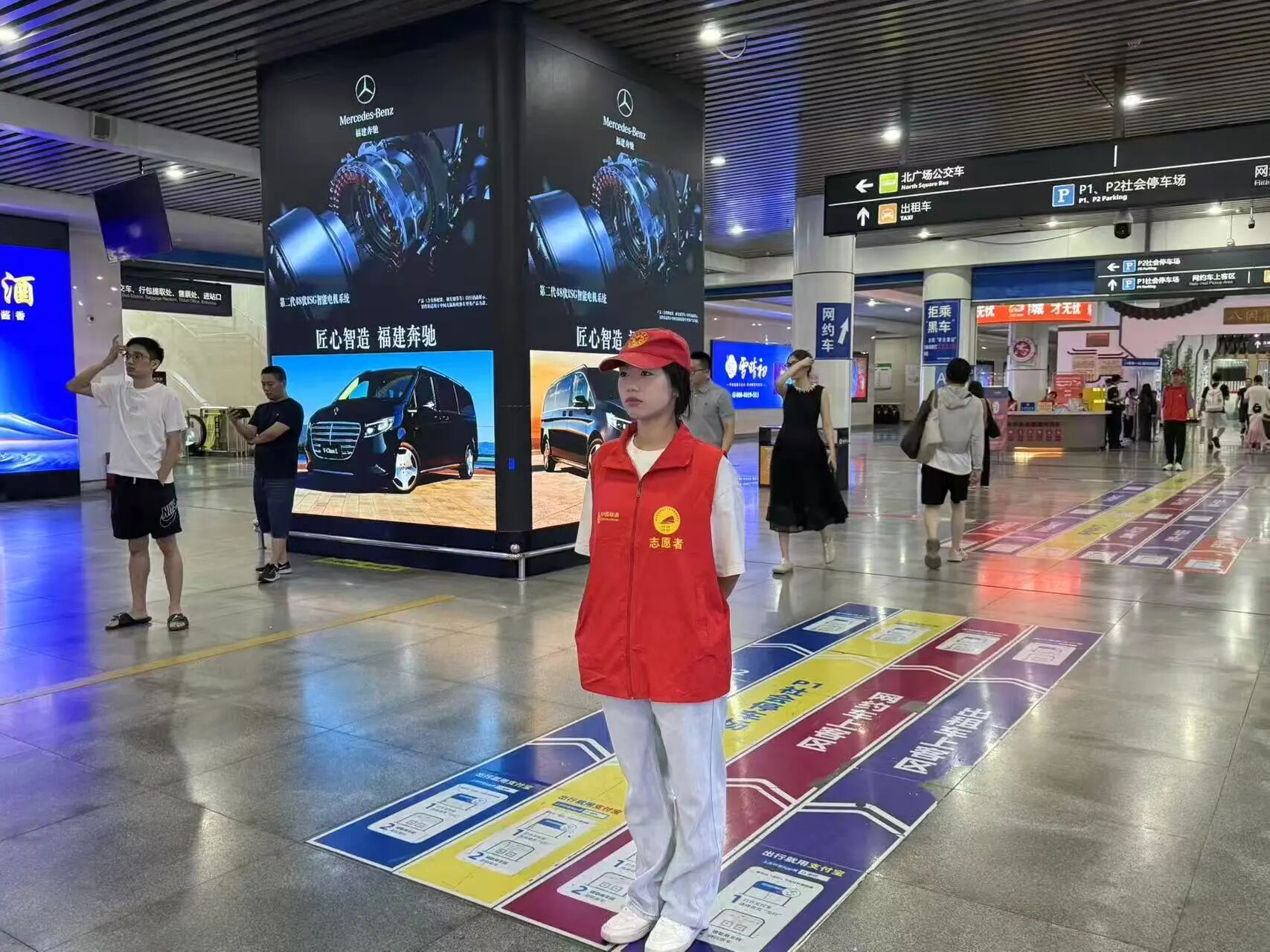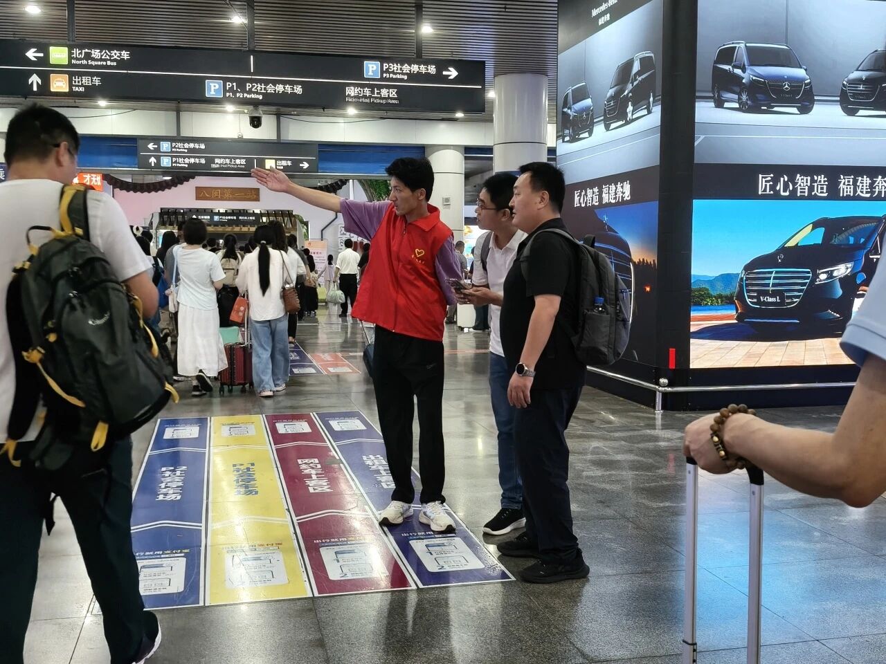 在客流高峰时段,秩序维护岗的志愿者们主动化身“流动指引员”,耐心引导旅客有序排队,温馨提醒“先下后上,注意安全”。面对“去厦门的车次在哪个检票口?”“公交车和地铁怎么走?”等常见问题,他们始终面带微笑,精准解答,让每一位问询的旅客都感受到贴心的服务。