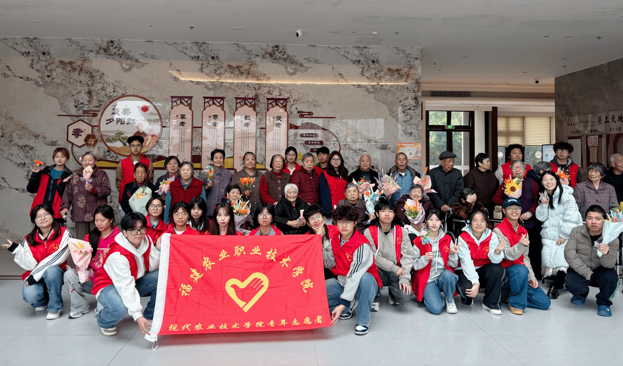 实践课堂不止于校园,更延伸至社区。青马学员们带着热情与笑容走进静馨敬老院,开展“冬至暖阳,指尖生花”志愿服务活动。陪爷爷奶奶聊天、表演文艺节目、教做简单手工、送上手写祝福卡……一个个青春身影,成为冬日里最暖的“一抹亮色”。在真诚的互动中,学员们将敬老爱老的传统美德融入志愿服务的温暖行动,在服务中感受温情,在奉献中收获成长,切实增强了学员们的社会责任感与使命担当。