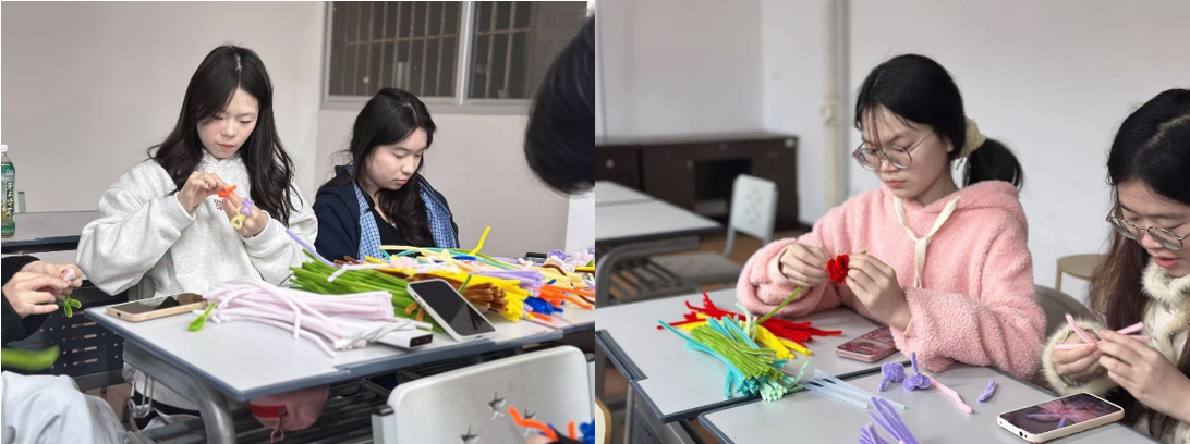 你以为传统文化只能是“老古董”?来“扭”转心情花漾治愈工坊看看吧!学员们拿起五颜六色的扭扭棒,尽情发挥创意,编织出寓意吉祥的郁金香、兰花等花卉造型。活动还特别设置了“三行情书·暖意传递”环节——学员们伏案执笔,有的写给未来的自己,寄托对成长的美好期许;有的写给远方的亲人,字里行间承载思念与祝福;还有的写给伟大的祖国,用真挚的语言表达“请党放心,强国有我”的青春誓言。