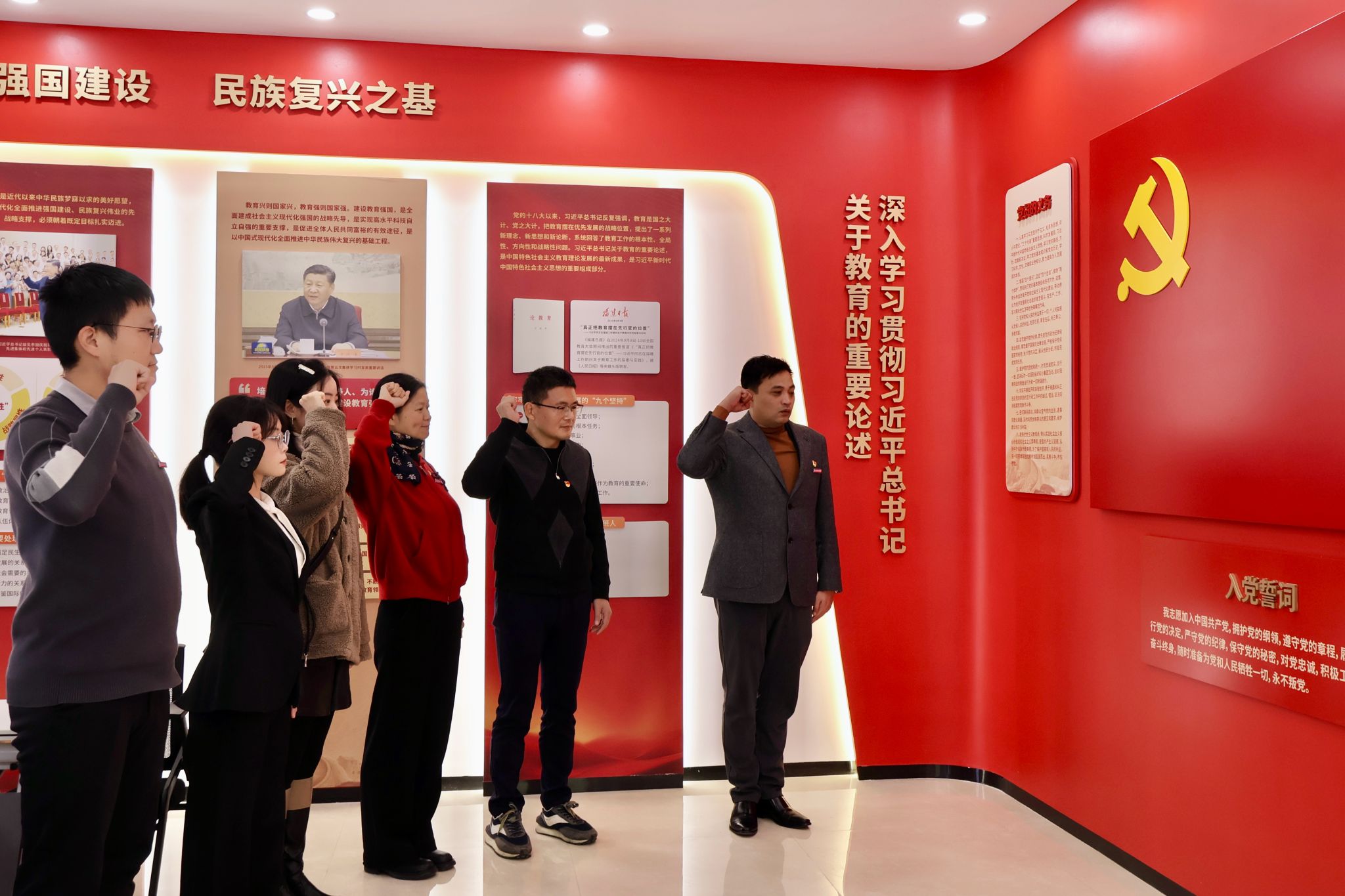 最后,张一宁副书记作总结讲话。他充分肯定了本次活动的学习成效,并提出三点期望:一是深化理论学习,以本次活动为契机筑牢思想根基;二是坚持读书习惯,丰富阅历、提升独立思考能力;三是立足专业特色,牢记强农兴农使命,将学习成果转化为服务乡村振兴的实践行动,在基层实践中锤炼党性、增长才干。活动最后,全体党员在张一宁领誓下,面向党旗庄严重温入党誓词。