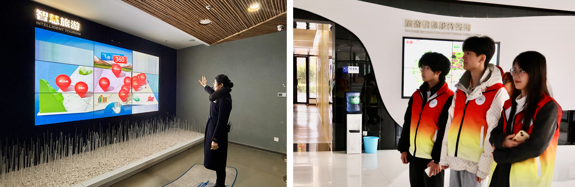 实践团随后来到旅游体验馆,借助多媒体展示与互动体验,全面了解永泰大樟溪流域、方广岩等生态与人文资源,深入学习永泰将文化底蕴与生态优势转化为旅游优势、助力乡村振兴的发展路径。