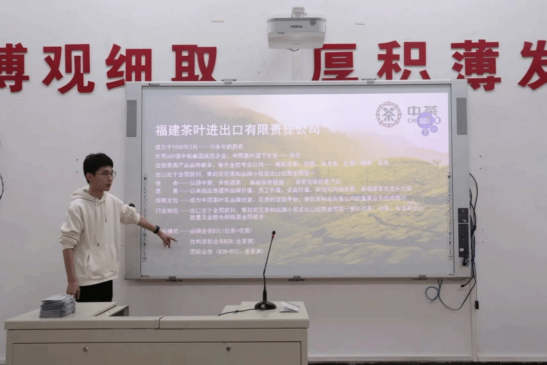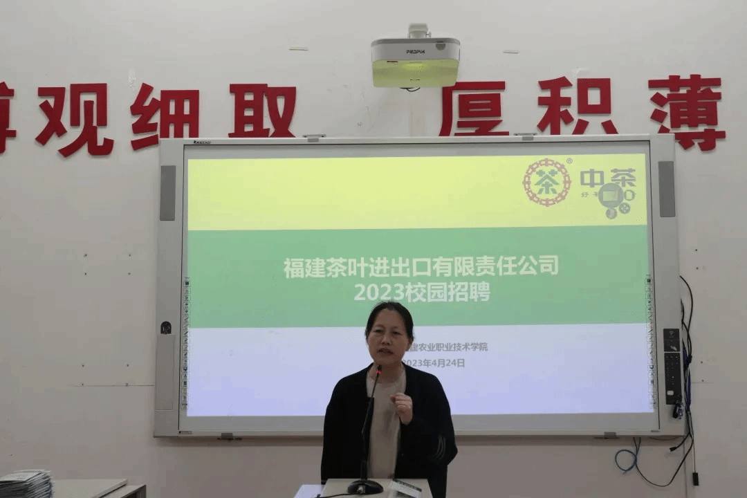 4月24日晚上,福建茶叶进出口有限责任公司人事招聘团队一行在教学楼512教室举行2023年企业招聘宣讲会。