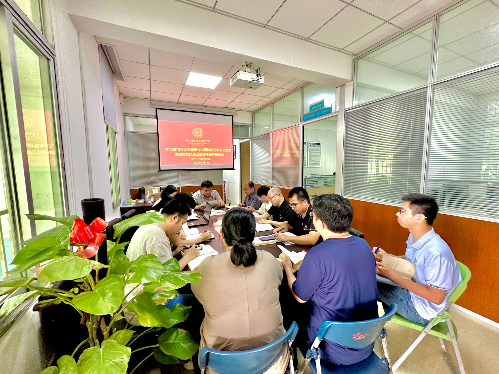 5月5日上午,学生工作党支部召开学习贯彻习近平新时代中国特色社会主义思想主题教育动员会暨读书班开班仪式。学院主题教育协调推进三组组长欧高政、组员钟林熙以及支部全体党员参加会议,会议由支部书记陈晓波主持。