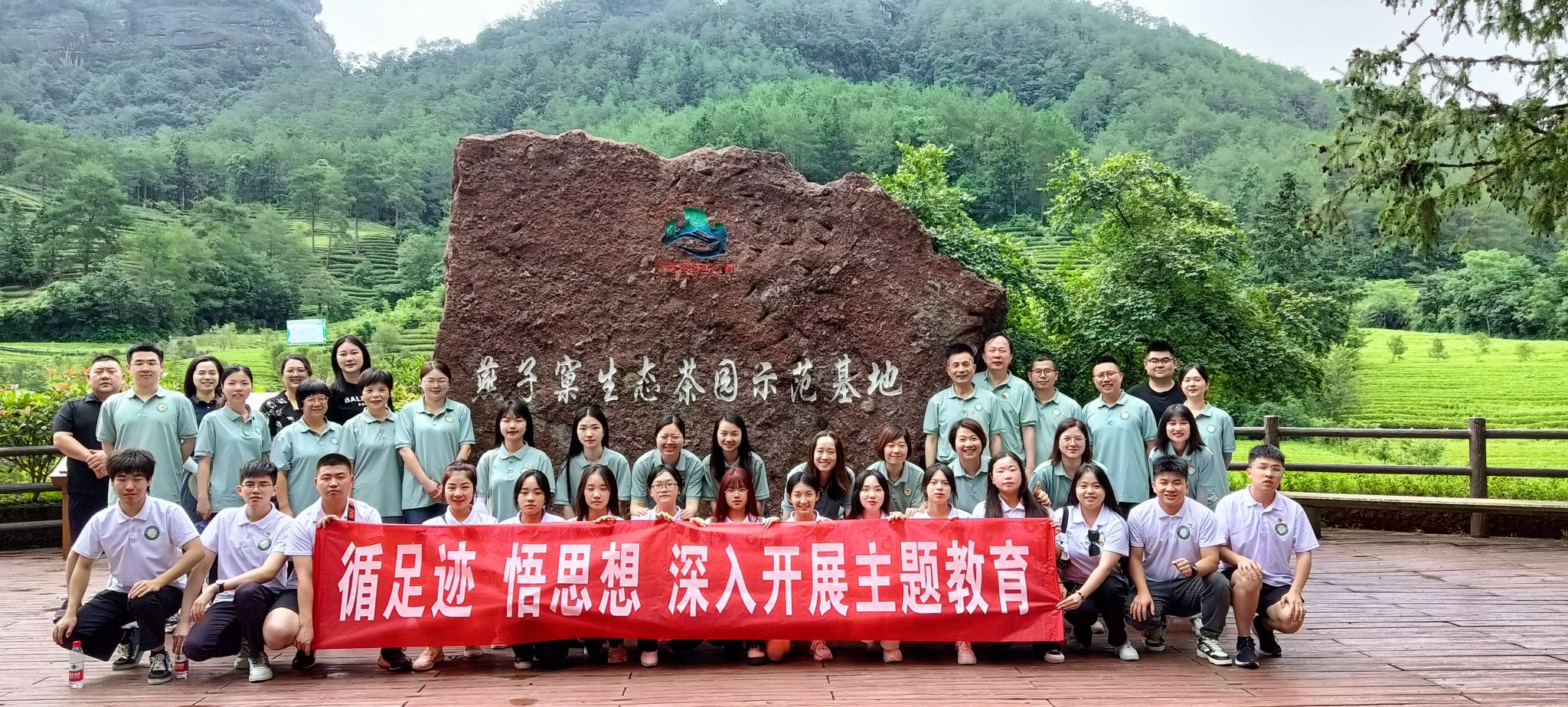 循足迹,悟思想。沿着总书记的足迹,6月26日上午,在武夷山市星村镇燕子窠生态茶园,师生党员深入了解了武夷山优质高效生态茶园建设情况,深刻领悟“茶文化、茶产业、茶科技”三茶统筹发展重要理念及学习科技特派员制度创新发展取得的一系列宝贵经验和显著成就,把主题教育与乡村振兴、产业发展有机结合。
