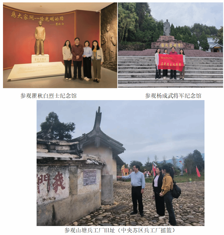 10月20日,马克思主义学院院长江明辉一行4人前往龙岩市开展“闽西行·文化振兴””实践研修活动,通过实地调研、校友访谈、参观红色遗址等方式,探寻赓续红色血脉,体悟红色文化,活用红色资源,感知革命老区乡村发展,把涵养苏区精神、传承红色基因与助力乡村文化振兴有机结合起来。