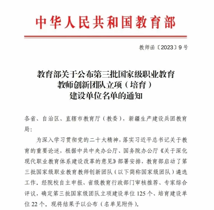 日前,教育部教师工作司发布《关于开展第三批国家级职业教育教师创新团队建设工作的通知》。我院组织申报的园艺技术专业(群)教师创新团队成功入选。