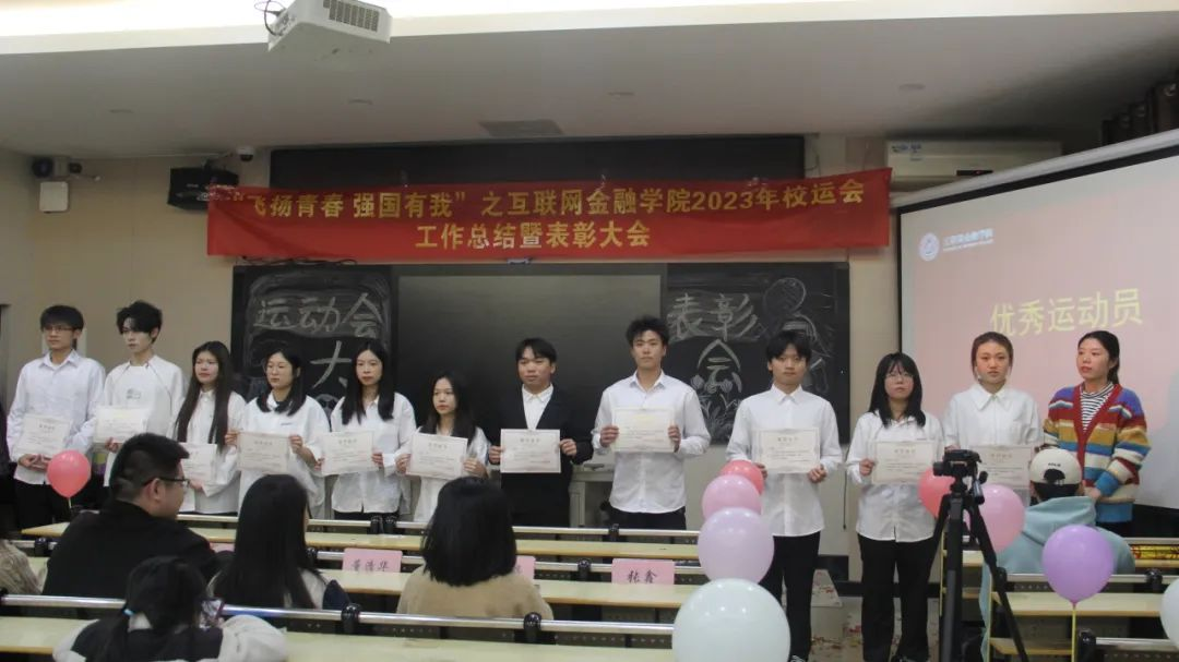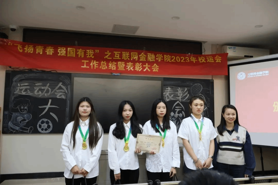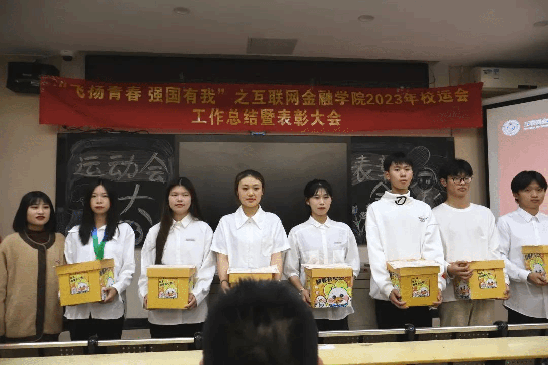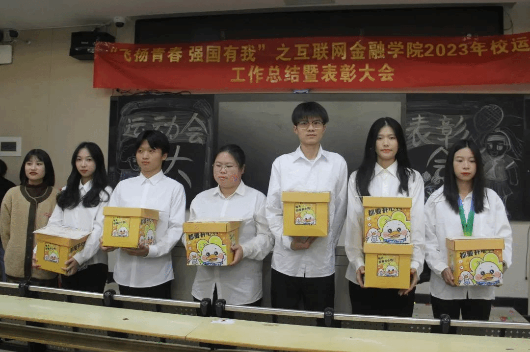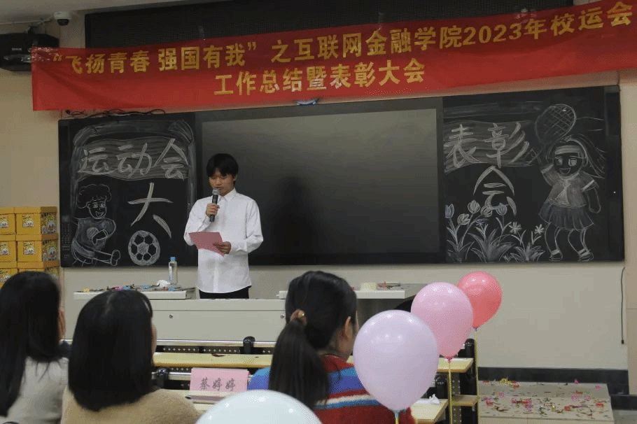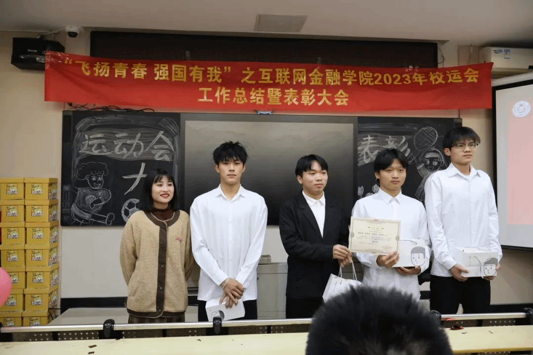 为了发扬顽强拼搏、不断创新、永不放弃的奥运精神,表彰先进,树立典型,进一步推进学院体育文化的发展与彰显校园良好的精神风貌。12 月 7 日19点,我院于首山校区教学楼602教室组织开展“飞扬青春,强国有我”之互联网金融学院 2023 年校运会工作总结暨表彰大会。参加此次大会的有互联网金融学院运动员、入场式表演人员、校运会工作人员、团学干部。莅临本次大会的领导老师有互联网金融学院副院长董清华老师、辅导员蔡婷婷老师、陈瑾老师、黄雨微老师、张鑫老师。