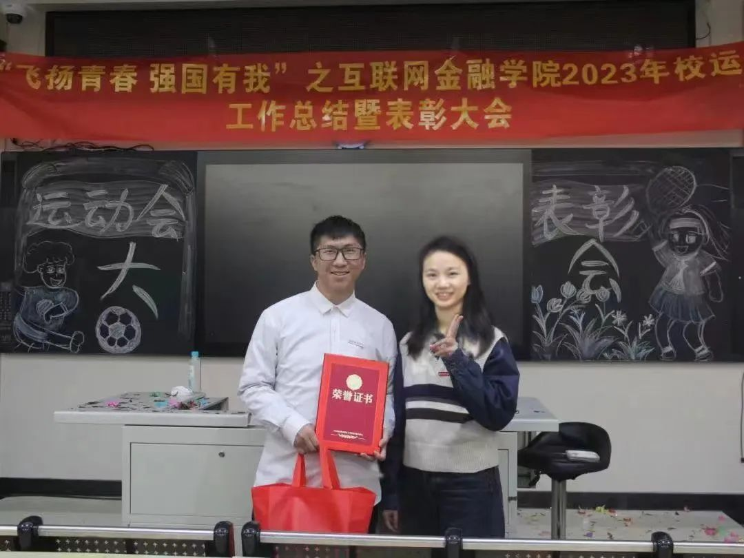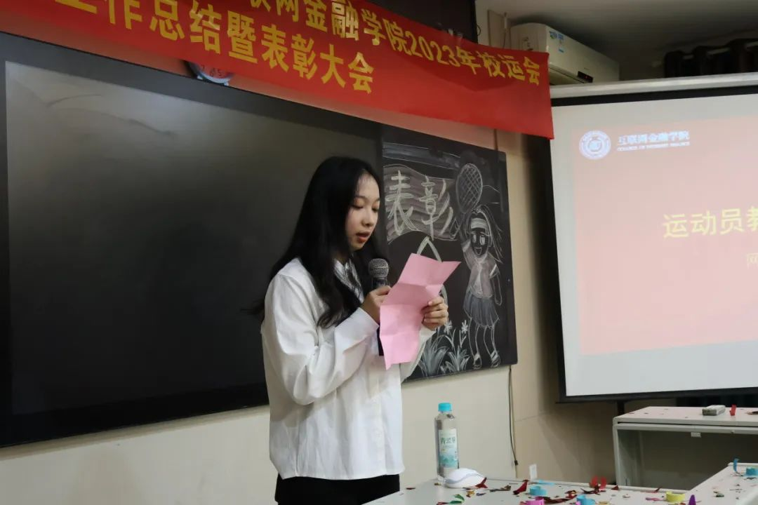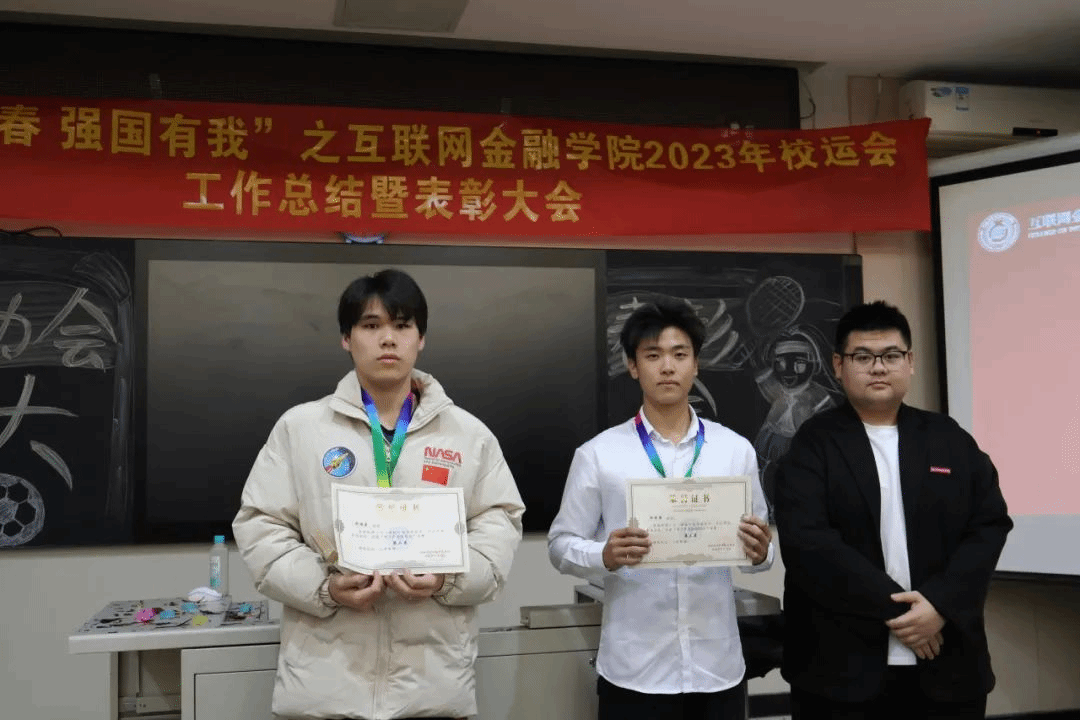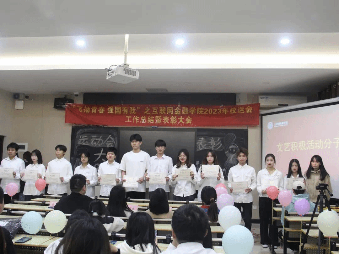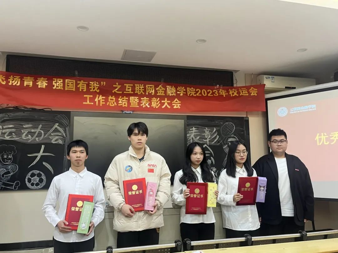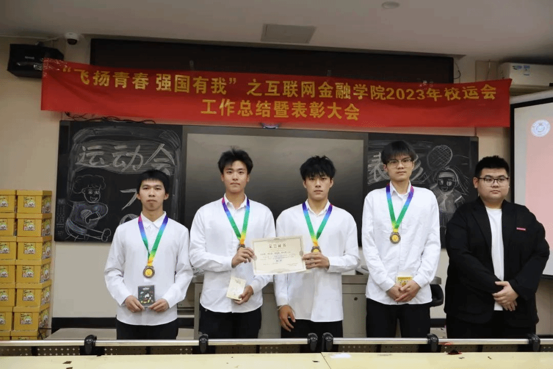 为了发扬顽强拼搏、不断创新、永不放弃的奥运精神,表彰先进,树立典型,进一步推进学院体育文化的发展与彰显校园良好的精神风貌。12 月 7 日19点,我院于首山校区教学楼602教室组织开展“飞扬青春,强国有我”之互联网金融学院 2023 年校运会工作总结暨表彰大会。参加此次大会的有互联网金融学院运动员、入场式表演人员、校运会工作人员、团学干部。莅临本次大会的领导老师有互联网金融学院副院长董清华老师、辅导员蔡婷婷老师、陈瑾老师、黄雨微老师、张鑫老师。