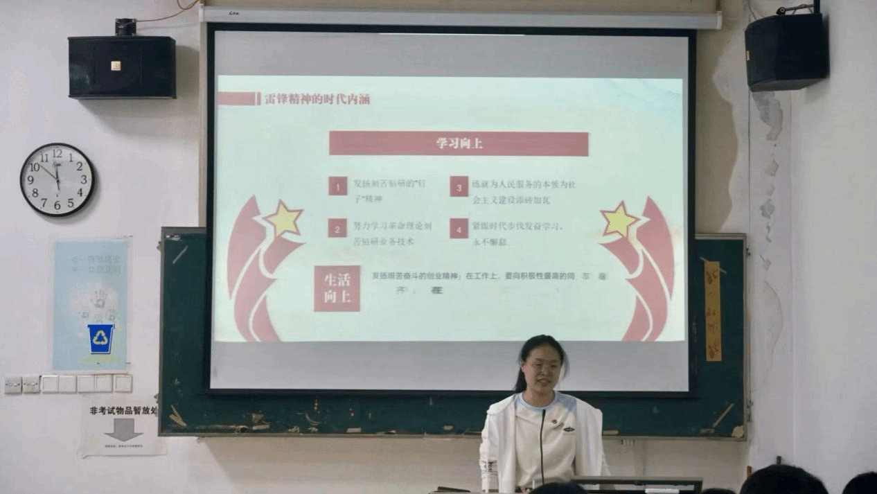 杨茹梦老师深情并茂地向同学们讲述了雷锋的生平事迹,看似稀松平常的小事,却深刻诠释着助人为乐、勇于奉献、热爱集体、克己奉公的精神。