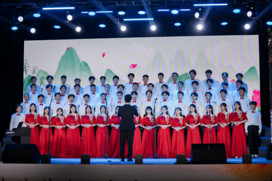 合唱环节,信息工程学院学子们怀揣着满腔热情,高声唱响《耕读强农》和《追寻》,嘹亮的歌声,展现了新时代青年积极向上的精神风貌,流露出他们勇往直前、奋力拼搏的激情与决心,更传递出他们对bat365的强烈归属感、对祖国最深沉的爱意。