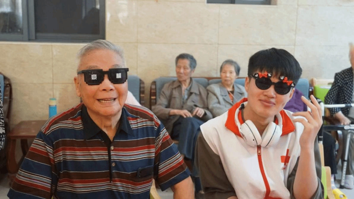 精彩不能停,志愿者们拿出了准备好的道具,爷爷奶奶们变换着搞怪的造型并拍下照片,现场欢声笑语不断。