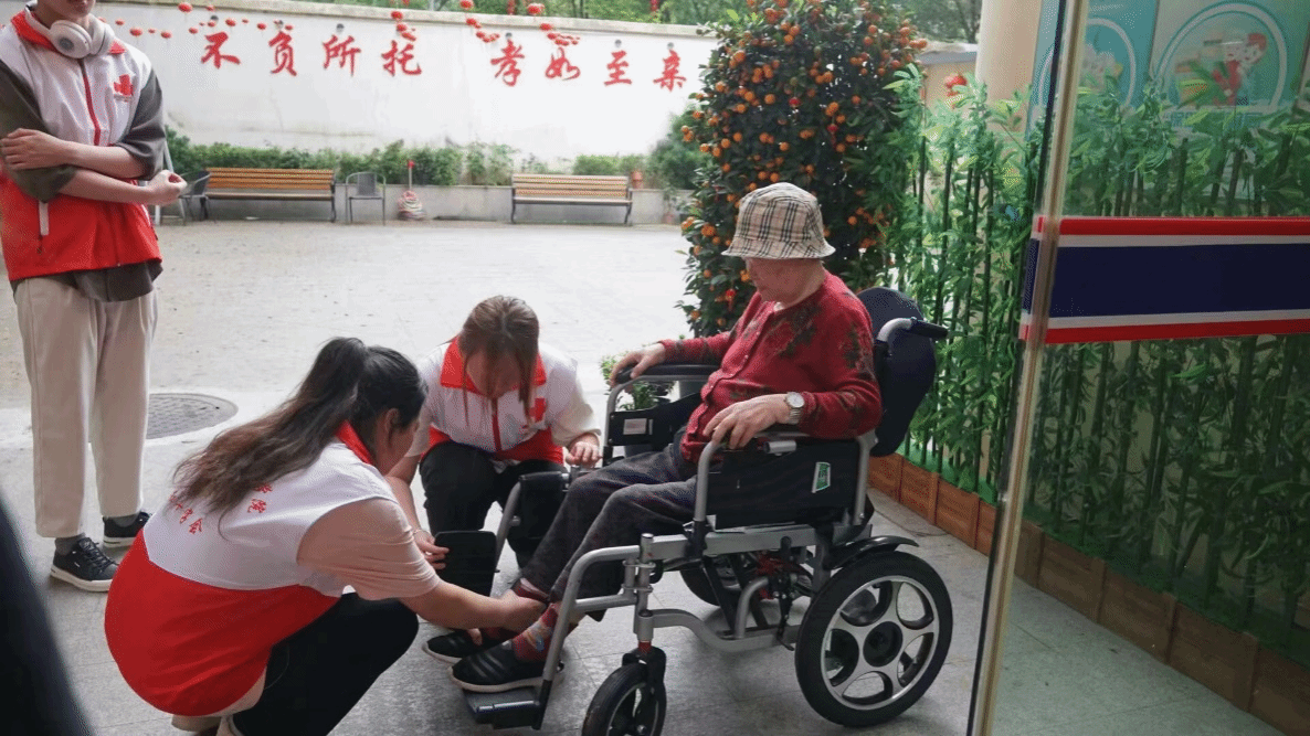志愿者帮助行动不便的老人