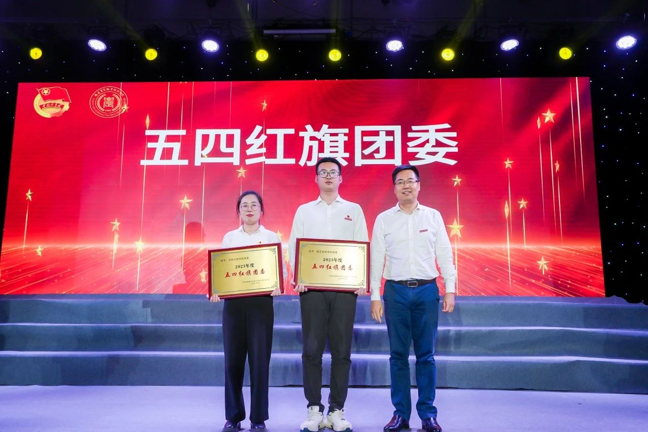 学院党委副书记王振亮宣读了2023年度五四红旗团委、五四红旗团支部、国家奖学金、国家励志奖学金等先进集体和优秀个人的表彰决定,与会领导为获得表彰的先进集体和个人颁奖。