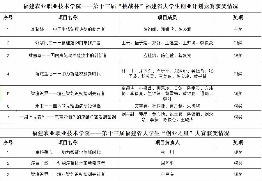 近日,第十三届“挑战杯”福建省大学生创业计划竞赛和“创业之星”大赛终审决赛在厦门大学嘉庚学院举办,经过激烈角逐我院荣获“挑战杯”竞赛金奖1项、银奖3项、铜奖3项,获评“创业之星”大赛银奖1项、铜奖2项。我院在本届“挑战杯”创业计划竞赛和“创业之星”取得新突破,获奖数为历年来之最。