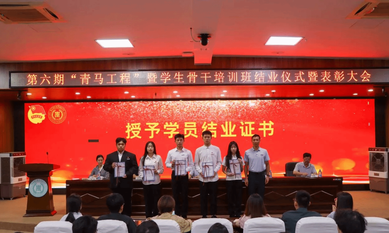 结业仪式在庄严的中华人民共和国国歌中拉开序幕,院团委书记林莹宣读《关于第六期“青马工程”暨学生骨干培训班准予结业和表彰先进的决定》。
