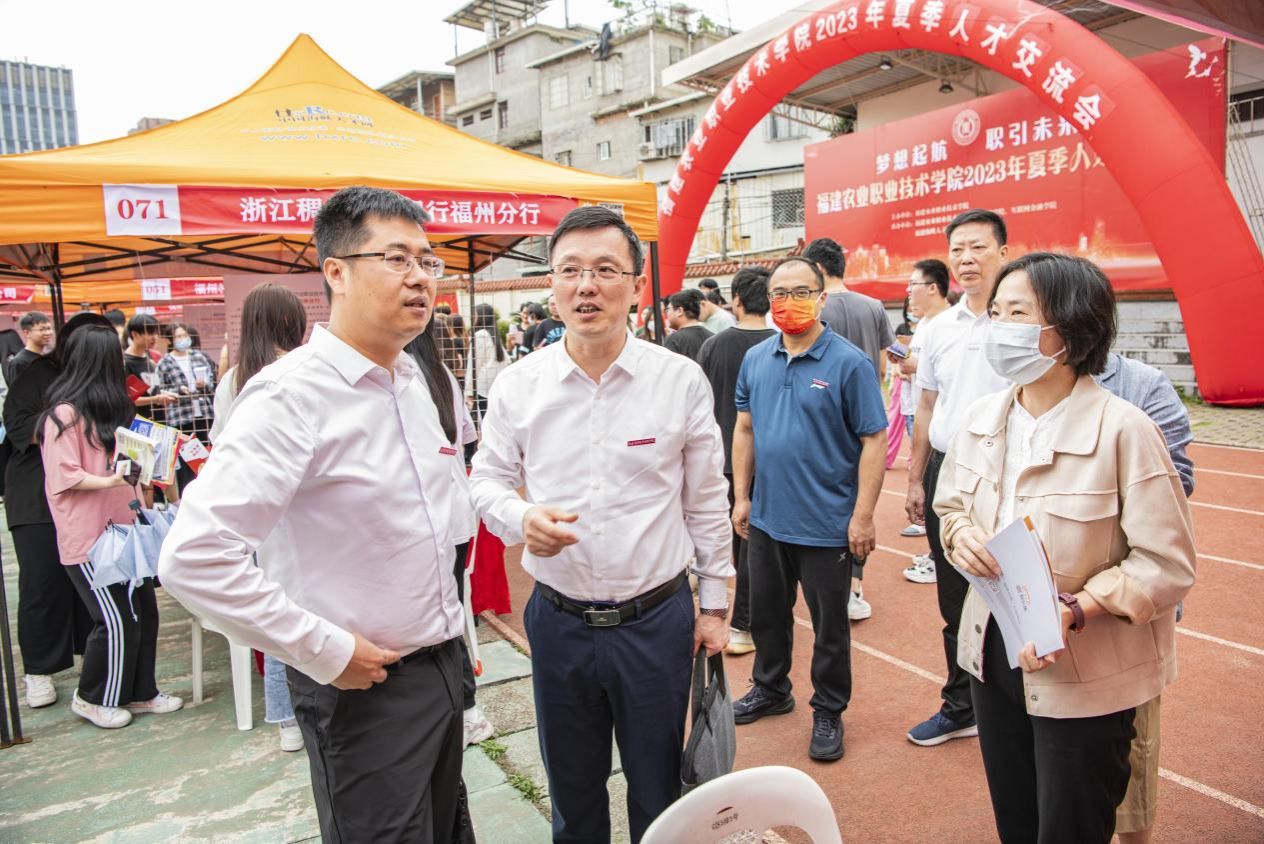 此次夏季人才交流会邀请了福建海峡人才网络资讯有限公司、盛辉物流集团有限公司、王品(中国)餐饮有限公司、厦门众冠捷管理咨询有限公司和来自省内外的上市公司、世界五百强企业、行业重点知名企业100多家用人单位,共计提供涉及新媒体营销、连锁经营管理、会计、物流管理、金融财税等多个专业领域近2200席优质就业岗位,吸引近1000名毕业生前来求职应聘。学院党委书记杨振坦、校长何东进走访用人单位点,同企业代表和毕业生现场互动交流,详细了解单位招聘和毕业生就业情况。