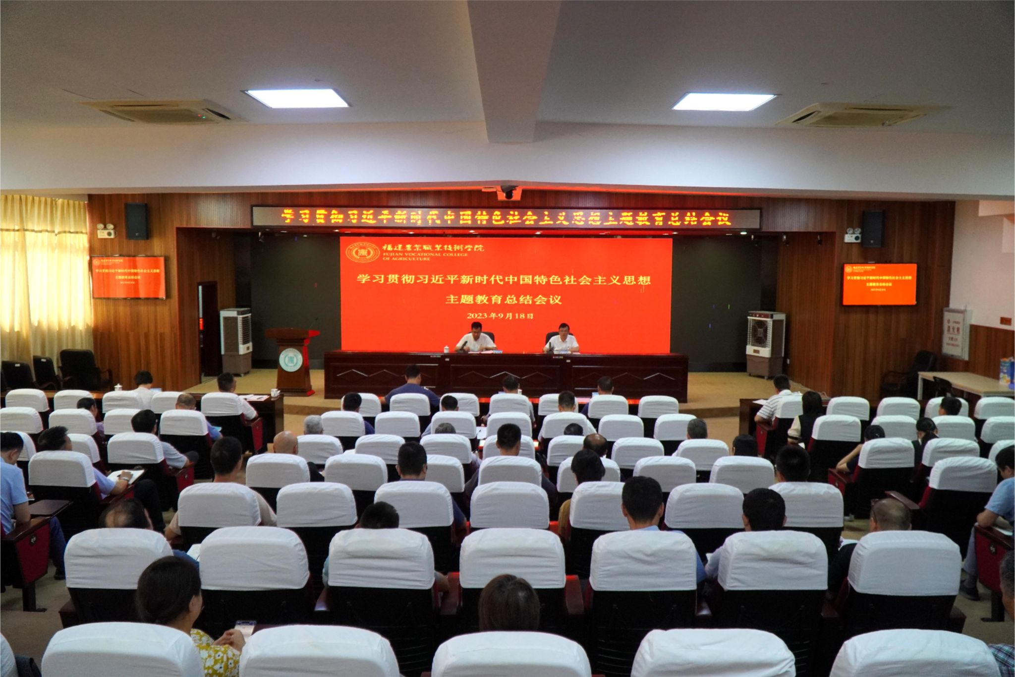 9月18日下午,学院在相思岭校区二楼学术报告厅召开学习贯彻习近平新时代中国特色社会主义思想主题教育总结会议。省委教育工委、省教育厅主题教育协调推进组一组林德酉同志到会指导。学院党委书记、学院主题教育领导小组组长杨振坦同志做主题教育总结发言。会议由何东进院长主持。