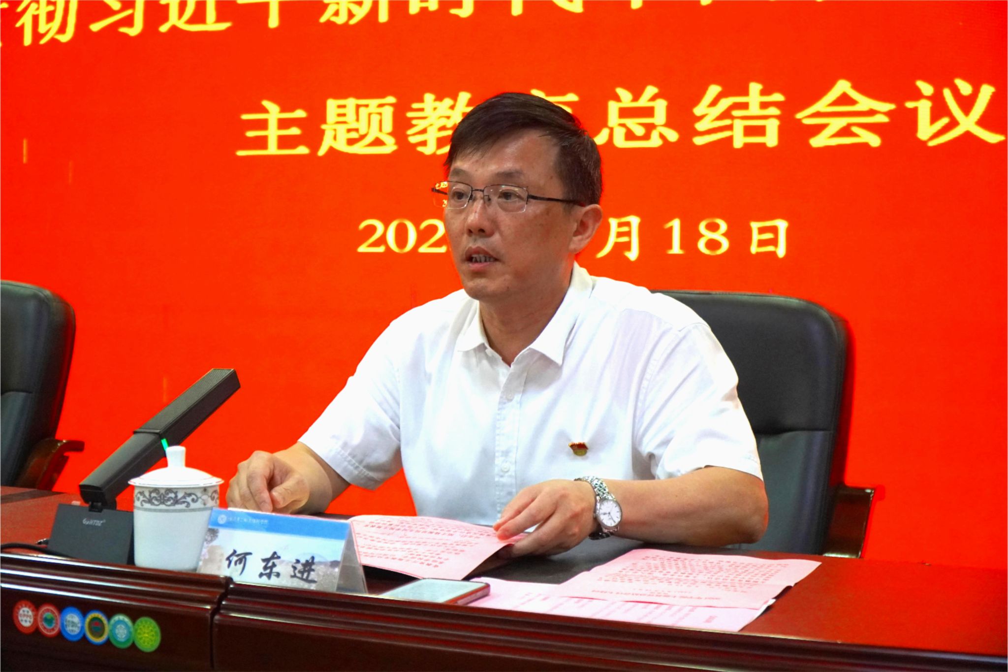 杨振坦书记指出,今年4月份主题教育启动以来,在省委教育工委、省教育厅党组的坚强领导和委厅主题教育协调推进一组的精心指导下,学院党委高度重视,以“开局即决战、起步即冲刺”的劲头,紧紧锚定目标任务,牢牢把握“学思想、强党性、重实践、建新功”总要求,围绕“凝心铸魂筑牢根本、锤炼品格强化忠诚、实干担当促进发展、践行宗旨为民造福、廉洁奉公树立新风”具体目标,坚持目标导向和问题导向相统一,严格对标对表,加强统筹谋划,着力在理论学习、调查研究、推动发展、深查严改、建章立制上下功夫,做到真学细悟、深研真改、真抓实干,深入推进主题教育落细落实,取得扎实成效:一是加强顶层设计,组织保障得到新强化;二是紧扣主题主线,学思践悟有了新进步;三是精准定位施策,治理能力实现新提升;四是强化使命担当,助力乡村振兴展现新作为;五是筑牢战斗堡垒,基层党建探索新突破;六是践行党的宗旨,凝聚人心取得新成效。